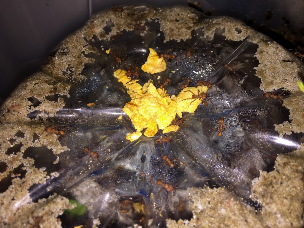 Auf Cornflakes fahren sie total ab. Kaum sind sie drin, schleppen sie diese auch schon ab - so schnell kann ich oft kaum meine Kamera zĂĽcken, wie schon die ersten Cornflakes davon getragen werden.