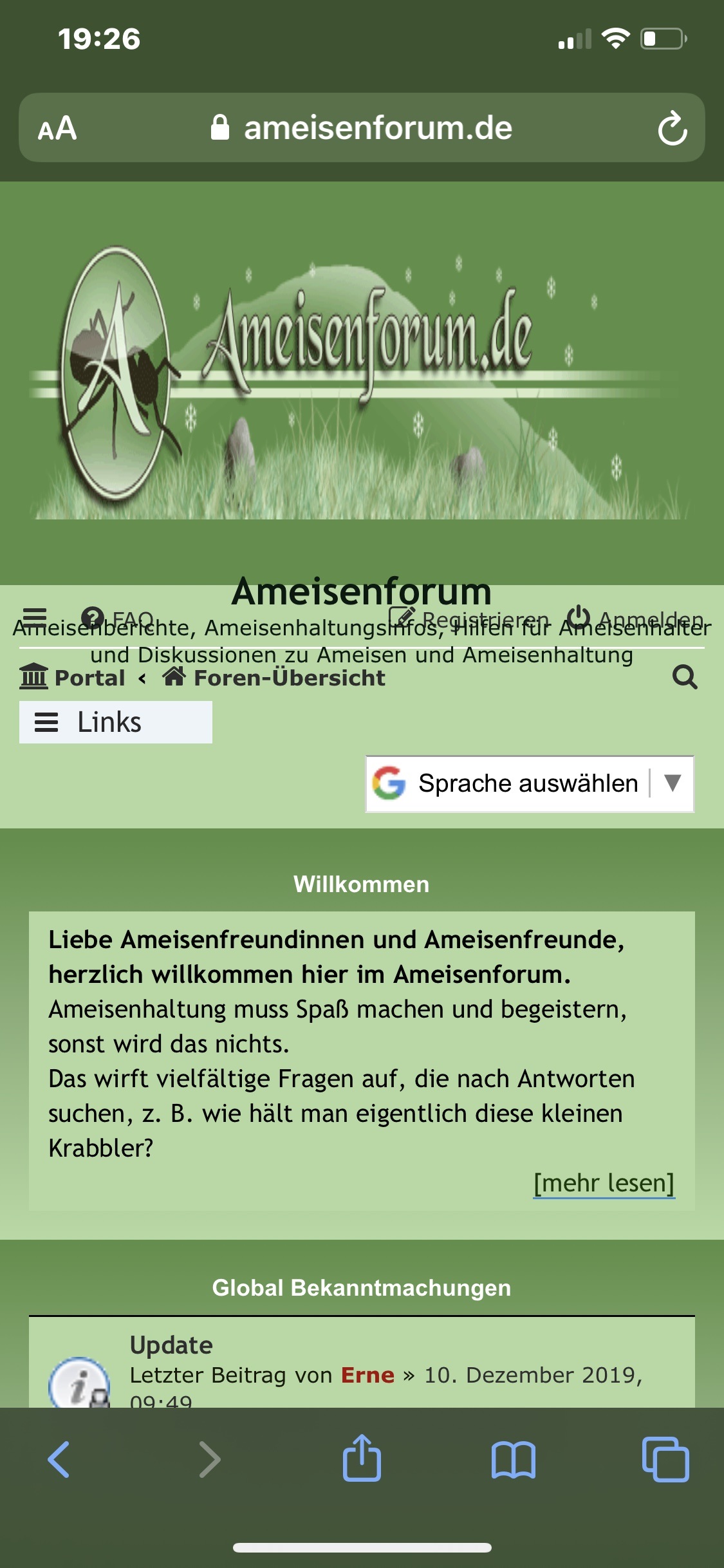 Als mögliche Hilfe, um gleich das Portal zu starten, www.ameisenforum.de/app.php/portal