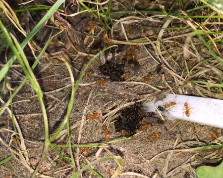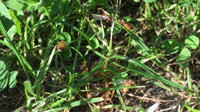 Bemerkung: Anscheinend haben bei den Schwarmflügen nicht alle Geschlechtstiere die Nester verlassen, denn jetzt schauen aus den selben Nestern wieder Männchen und einige Jungköniginnen hervor...