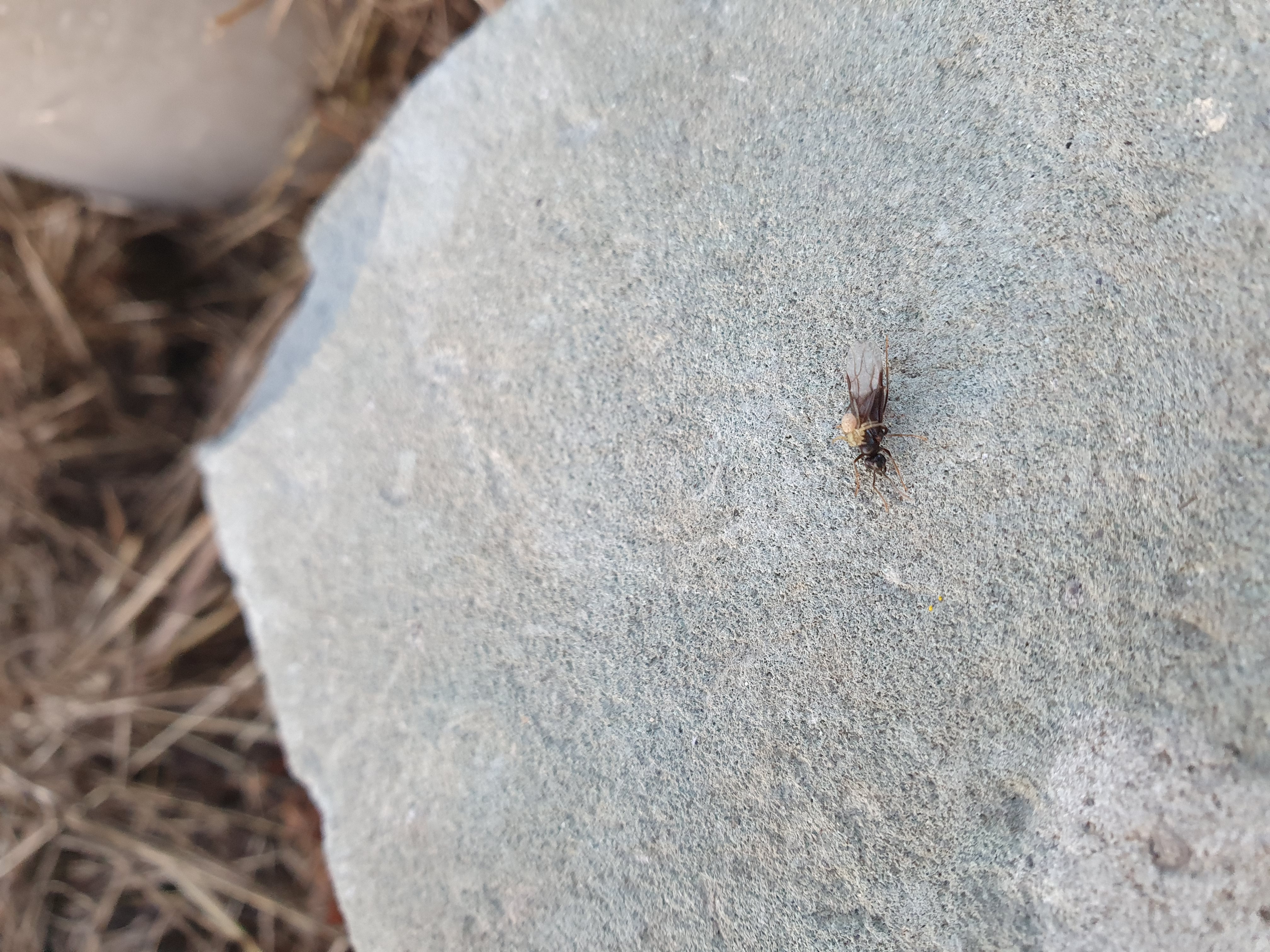 Winzige Krabbenspinne überwältigt eine um ein vielfaches größere Lasius cf. umbratus Gyne