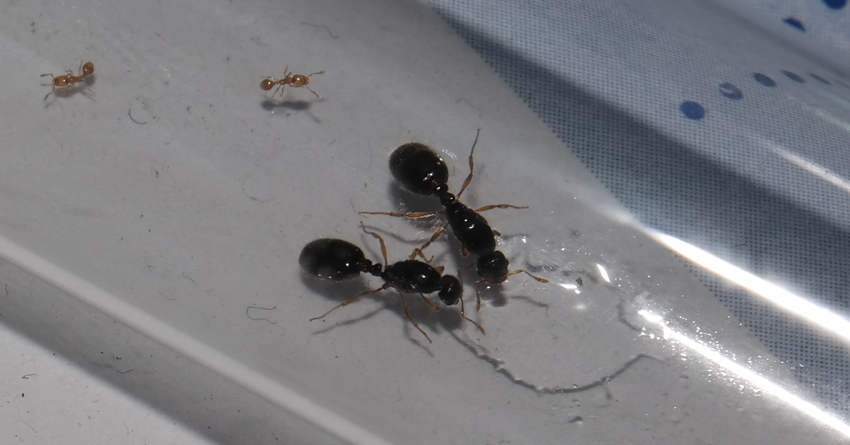 Königinnen waren 5 tot, und fein säuberlich auf einem Haufen platziert. Direkt an der Watte schien die Siegerin zu thronen.