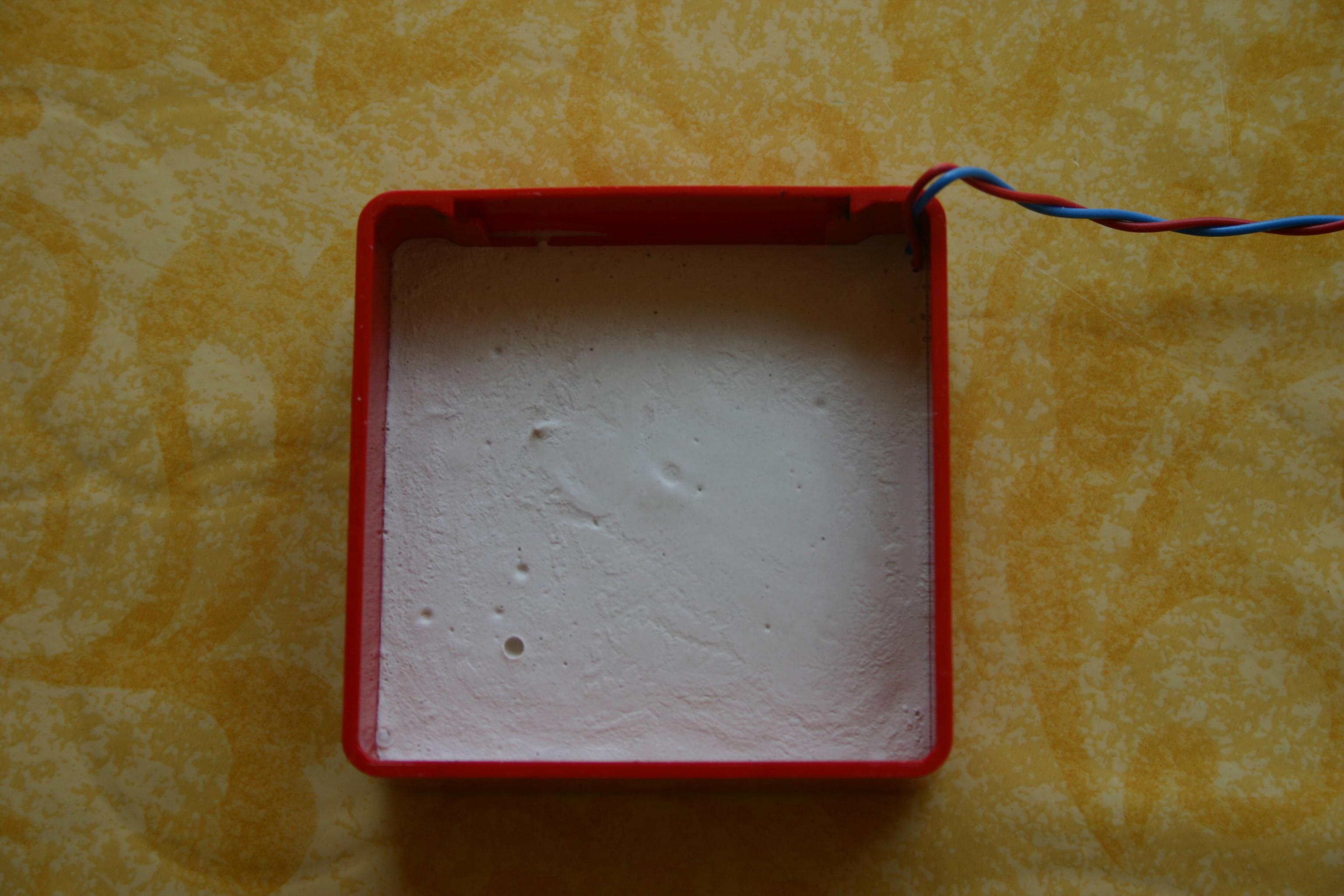 Nach dem Trocknen kann man das Gipsteil ohne Probleme auch der Form lösen. Nach dem AnschlieĂen an den 12 V wurde die Gipsheizung ca. 30 bis 33 Grad warm. DĂŒfte ja hoffentlich nicht zu viel sein. Die Heizung hat eine Leistung von ca. 4,2 Watt.