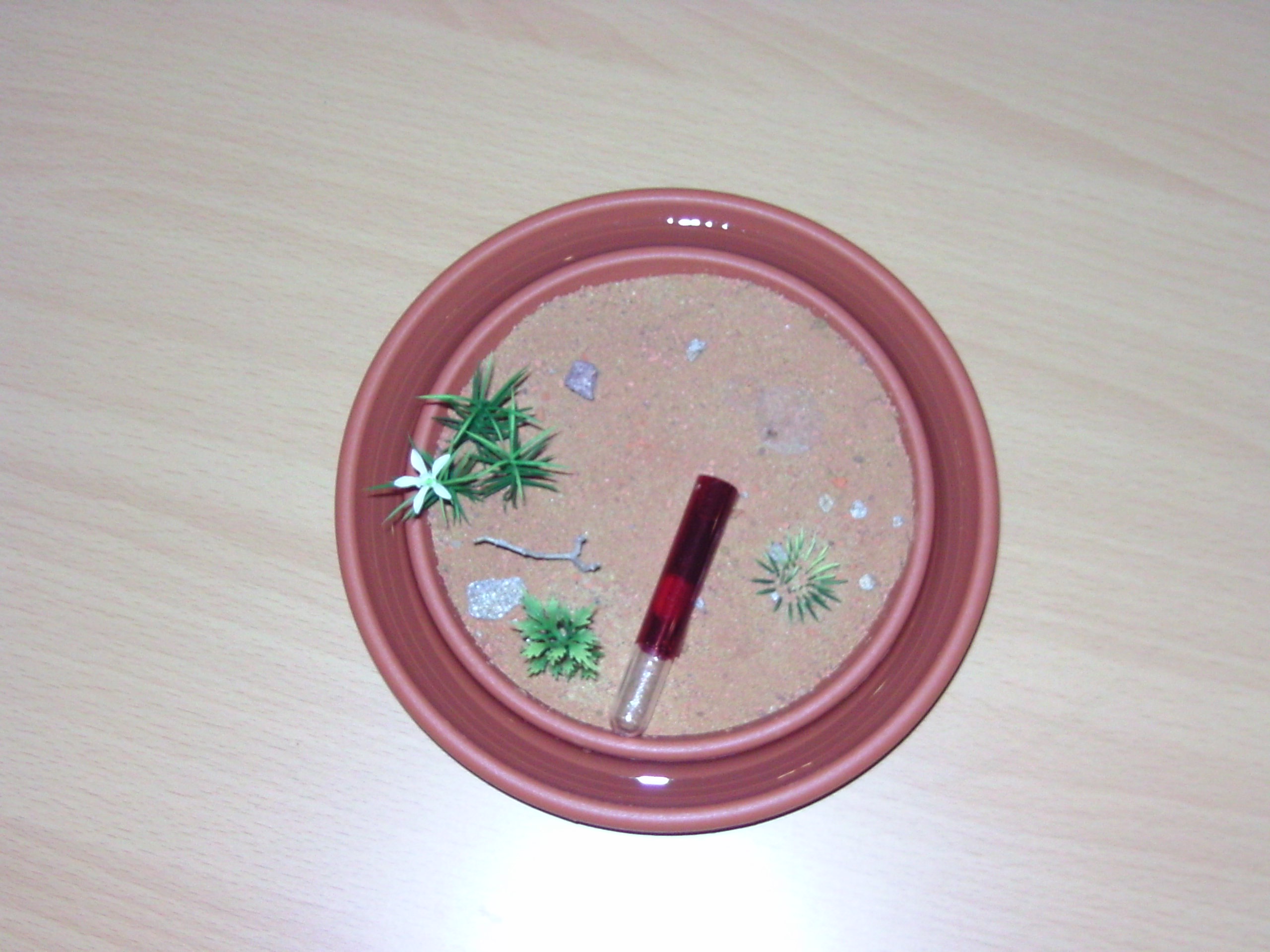 3. Gestalten (In meinem Fall mit Plastikpflanzen von Antstore und Steinchen)