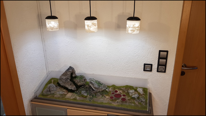 In 1-2 Jahren ist die Anlage sicher immer noch ĂŒberdimensioniert und bietet ausreichend Platz. Allerdings haben bisher alle meine Anlagen in dieser Zeit sehr gelitten. Es hört sich vielleicht seltsam an aber ich habe immer den Eindruck, dass alle natĂŒrlichen Materialien "sterben" sobald sie nicht mehr der Witterung ausgesetzt sind. Besonders Steine wirken nach einem Jahr irgendwie matt und kontrastlos. Kleine Flechten und Moose sterben ab, alles trocknet gleichmĂ€Ăig durch, Farben werden stumpf und das ganze Formikarium nimmt eine gleichförmige, leblose Optik an. Das ist vielleicht etwas pingelig, aber es ist der Hauptgrund warum ich die Einsatzdauer so niedrig ansetze. Ich war nie ein Ameisenhalter dem ein groĂes Volk wichtig war, oder der besondere Freude an exotischen Tieren hatte. Mein gröĂter Antrieb war immer ein schönes Formikarium zu bauen, dabei aus meinen Fehlern zu lernen und es im nĂ€chsten Jahr besser zu machen. TatsĂ€chlich finde ich es nach wie vor eine groĂe Herausforderung Becken einzurichten, die den AnsprĂŒchen von Ameisen, Einrichtung und Halter (in dem Fall mir) dauerhaft gerecht werden.