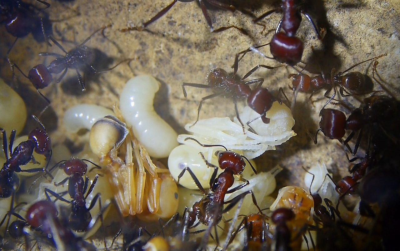 Die links daneben, nicht ganz so groĂź, hat es fast geschafft, ist kurz vorm schlĂĽpfen.