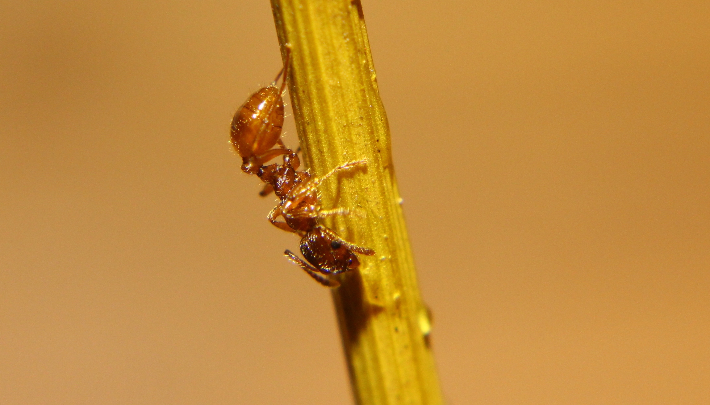 Myrmica spec. trinkt Honig von einem Grashalm.