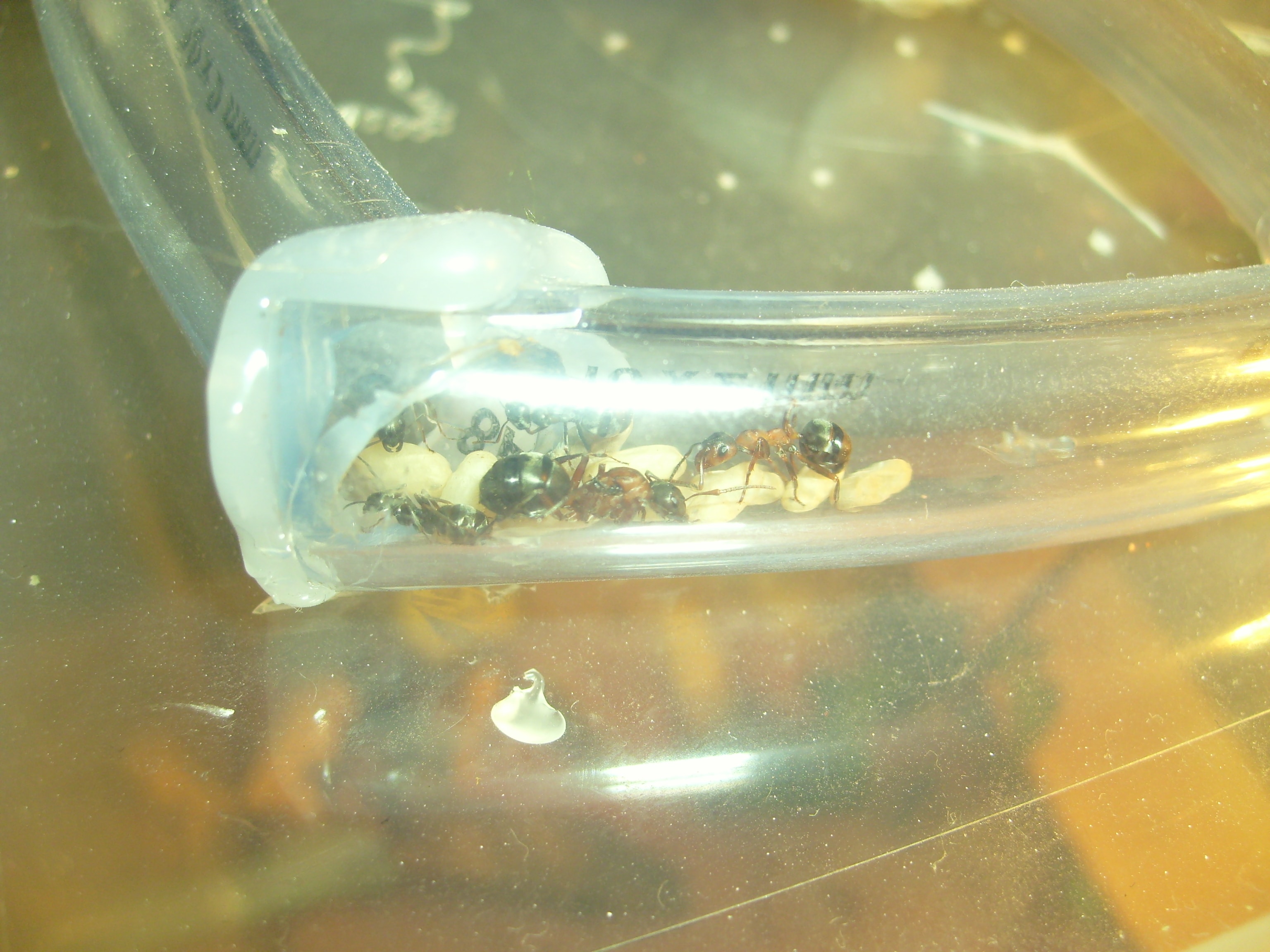 Hier seht ihr ein paar Bilder einer Raptiformica Kolonie beim GrĂŒnden mit Hilfe von Formica fusca Puppen. Nachdem die ersten eigenen Arbeiterinnen da waren, hat sie einen neuen Besitzer in Belgien finden können. Dort hatte der neue Halter einige Jahre viel Erfolg mit der Kolonie. Habe leider sehr lange nichts mehr von ihm gehört.