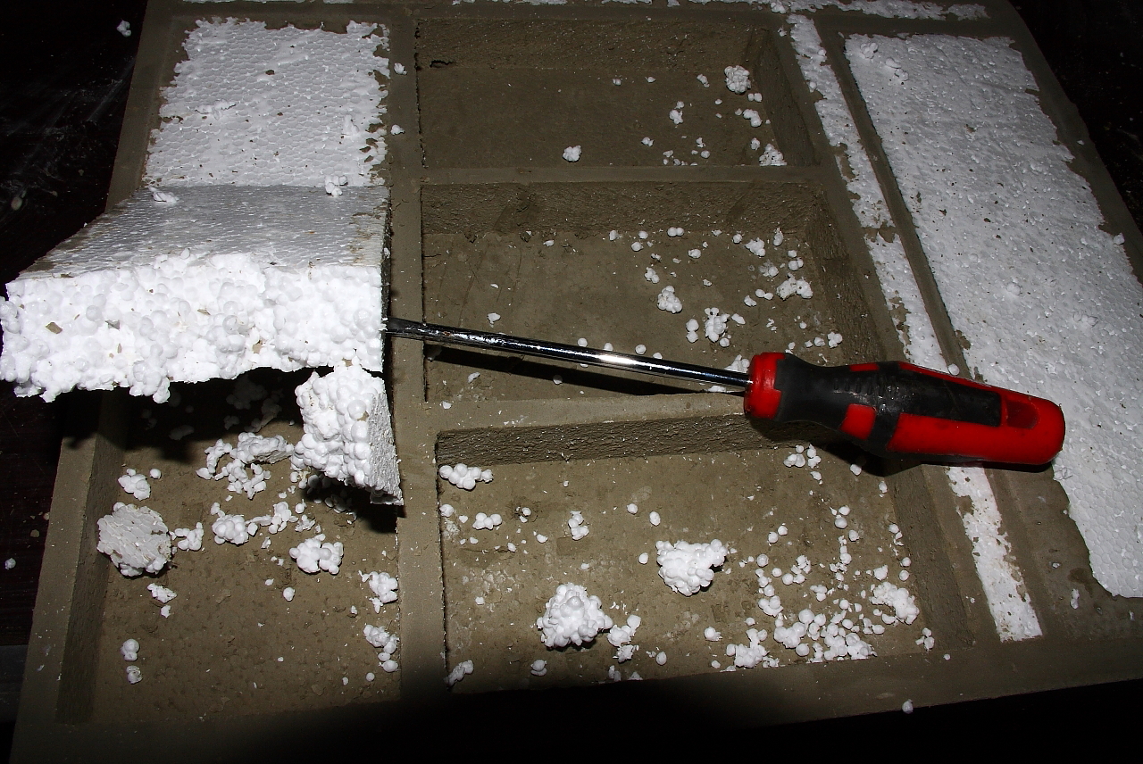 Jetzt noch die Styroporblöcke raus, geht prima mit einen Schraubendreher