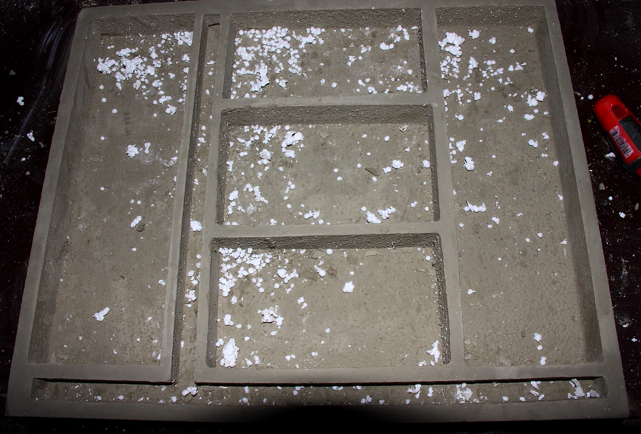 Kammern und Gänge werden aus Styropor gefertigt und probeweise in den Rahmen gelegt.