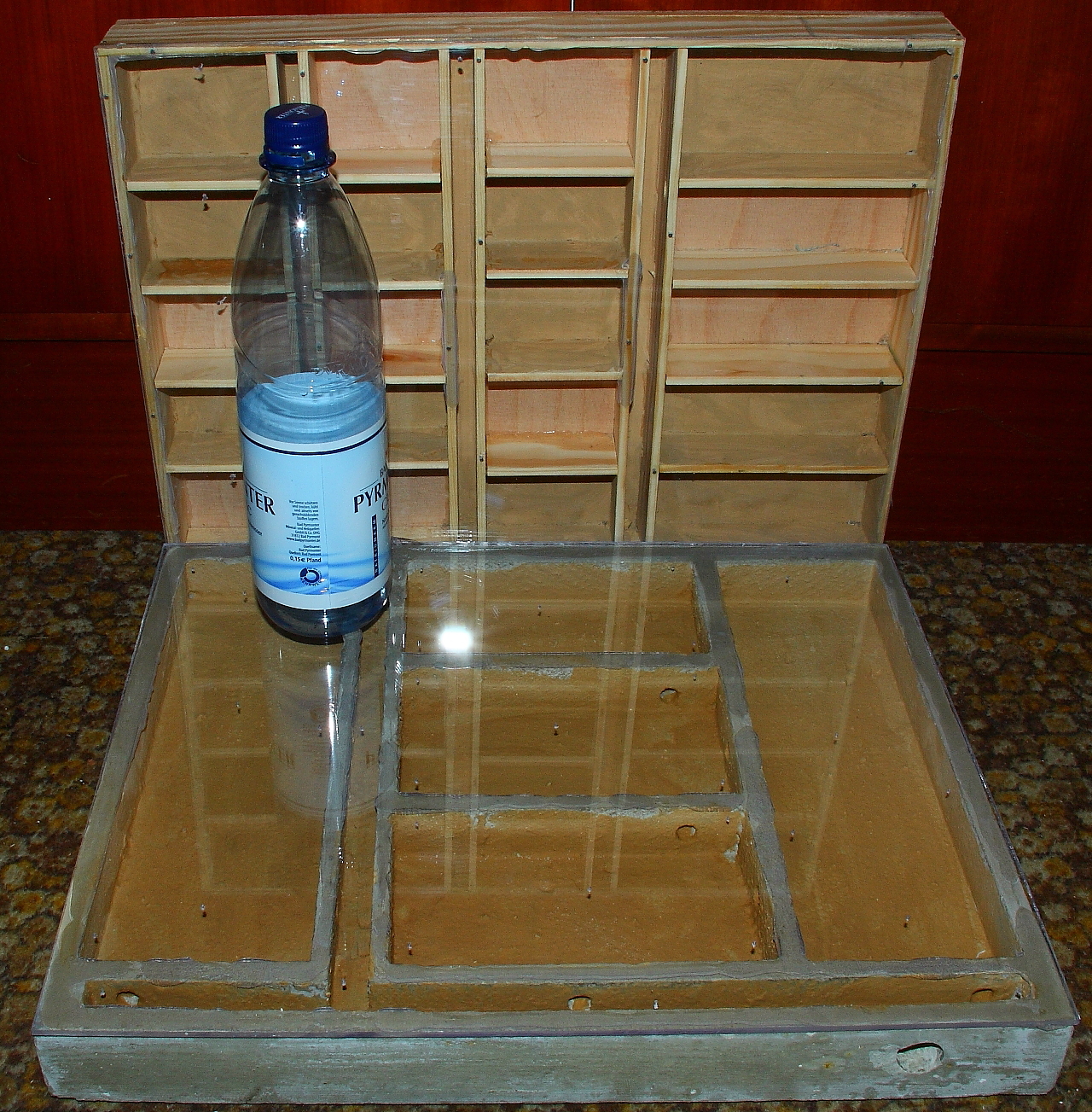 Ein paar Durchgänge muss ich noch einbauen, einen Lehmanstrich gibt es noch, eine Plexiglasplatte drauf und fertig ist das Teil.