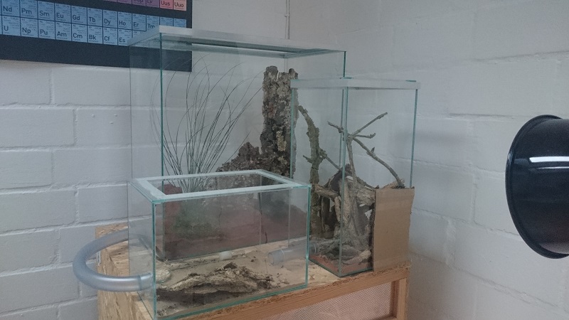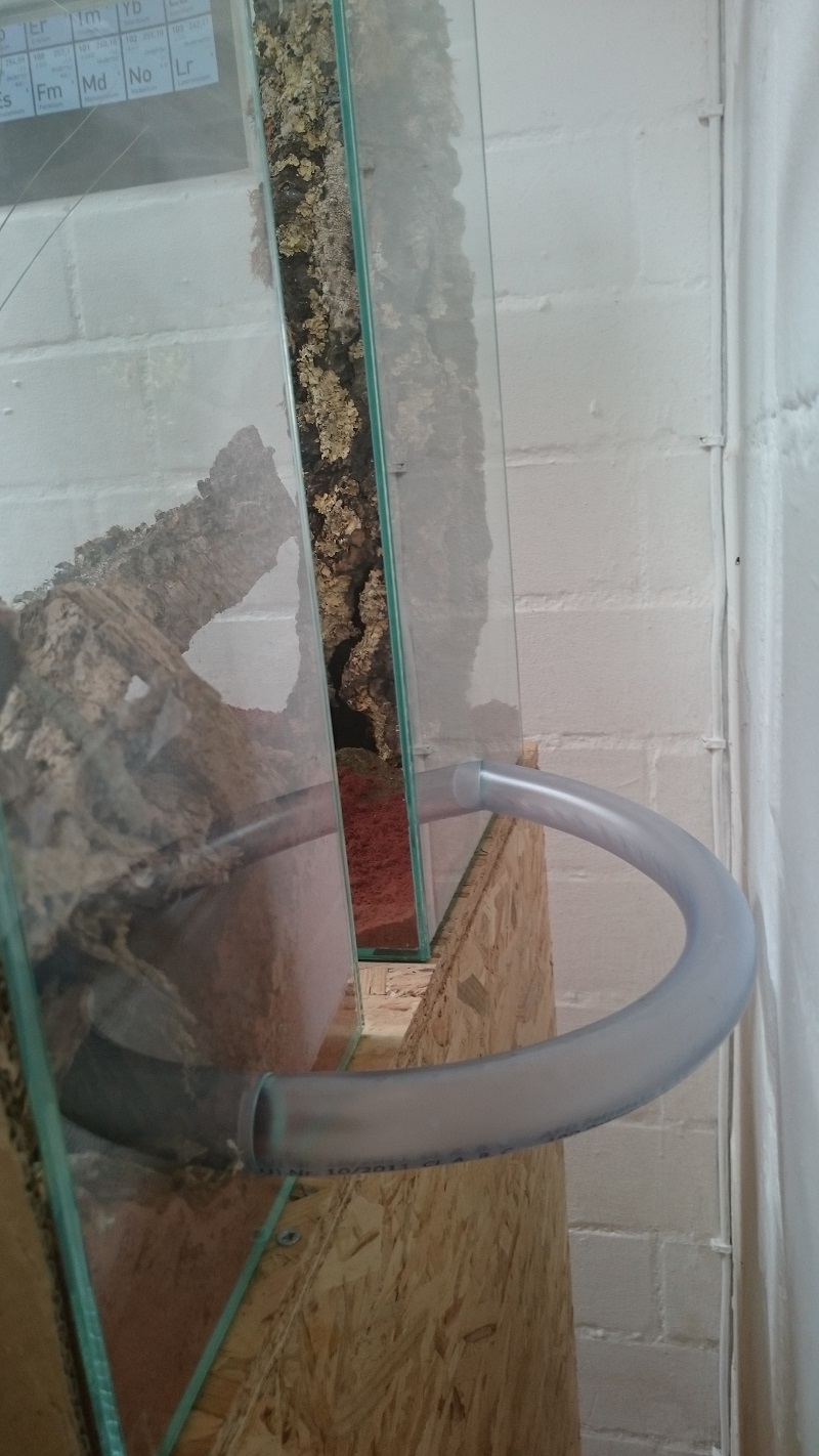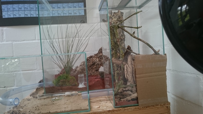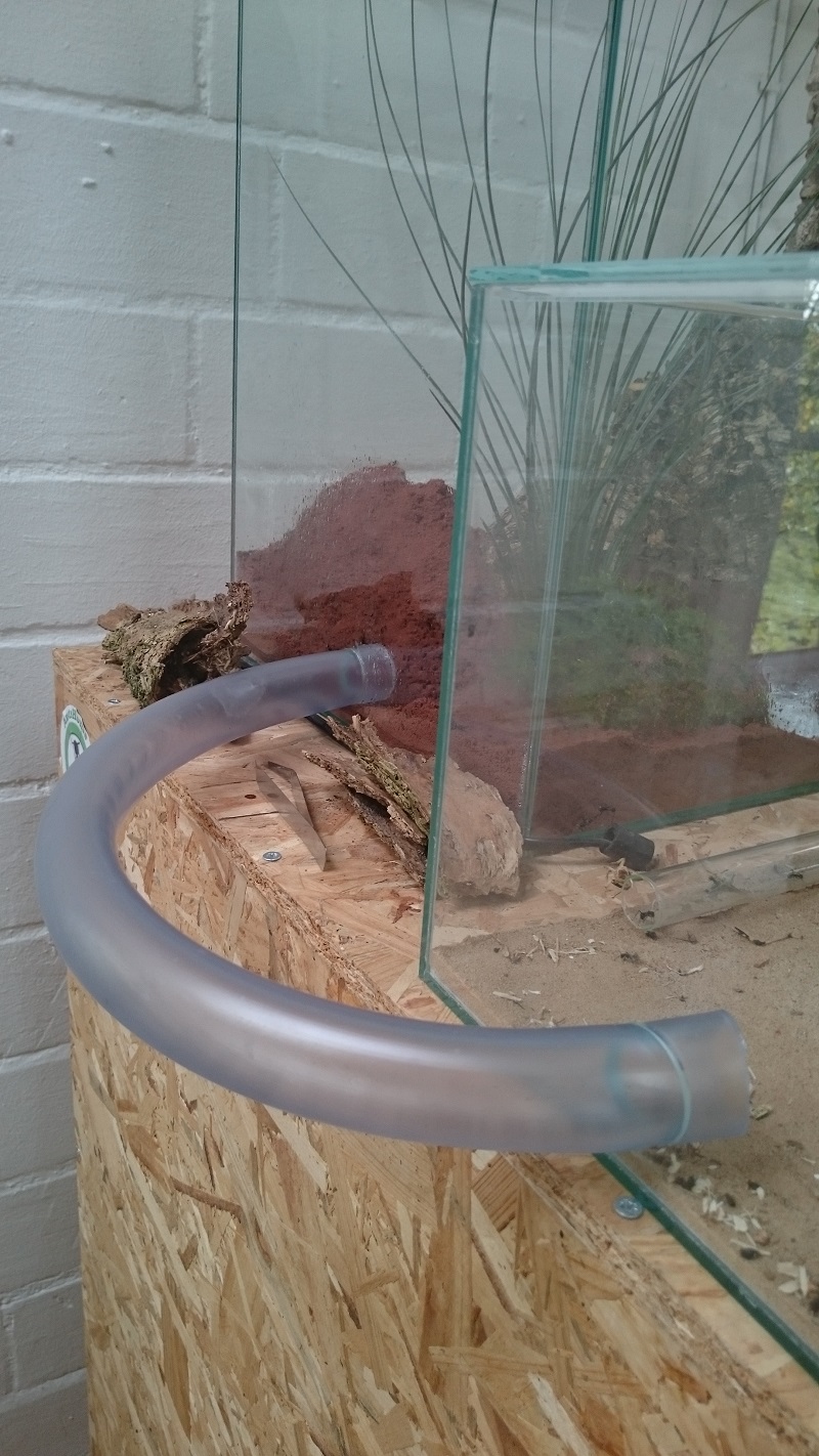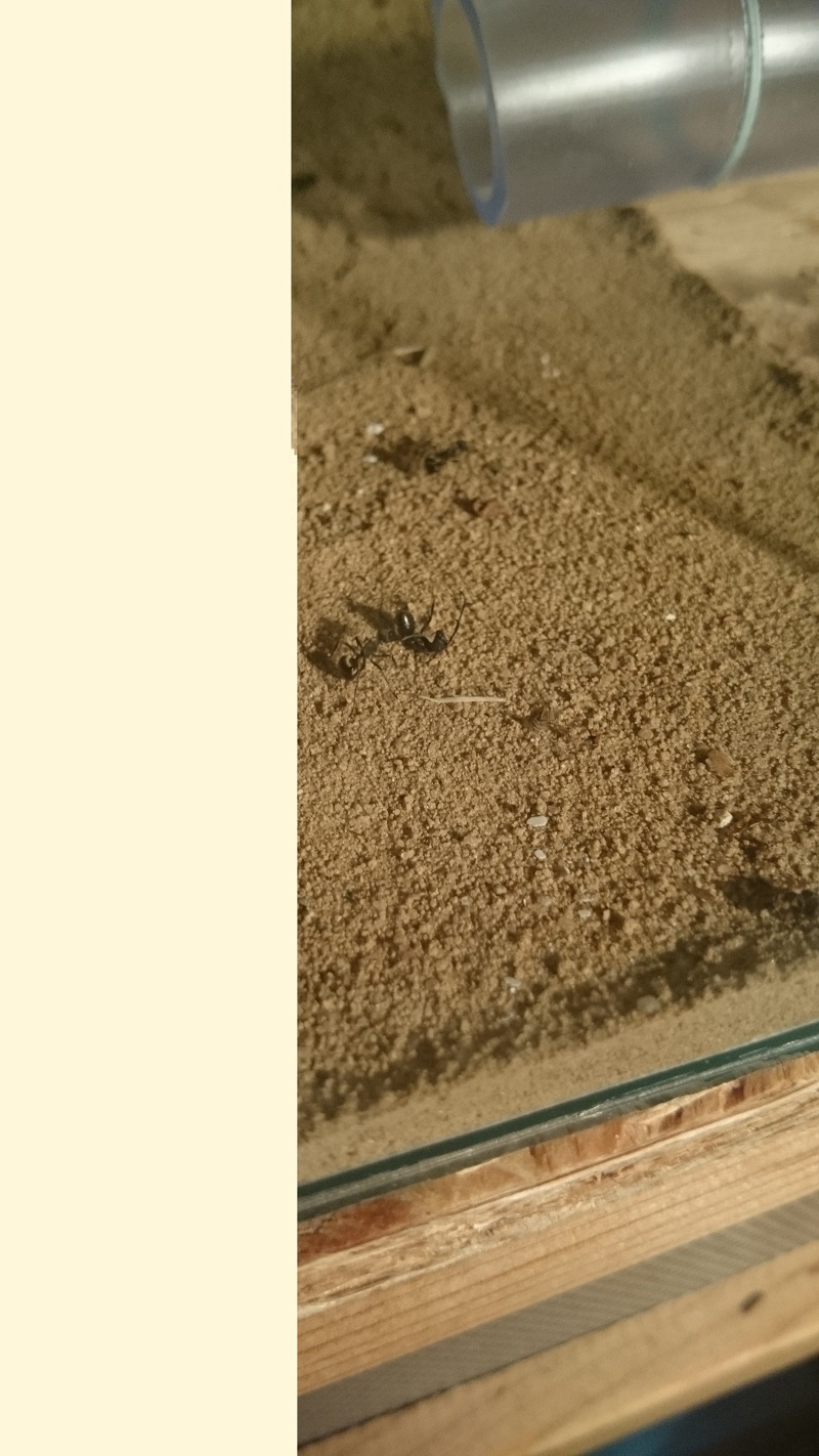 Da ich nun aber nicht einfach warten wollte, bis erneut eine Arbeiterin verstirbt, habe ich ein zweites Formicarium über ein recht kurzes Schlauchstück angeschlossen (dadurch möchte ich den Fehler meiner ersten Kolonie vermeiden, die sich im Schlauch später dann auch einnistete).