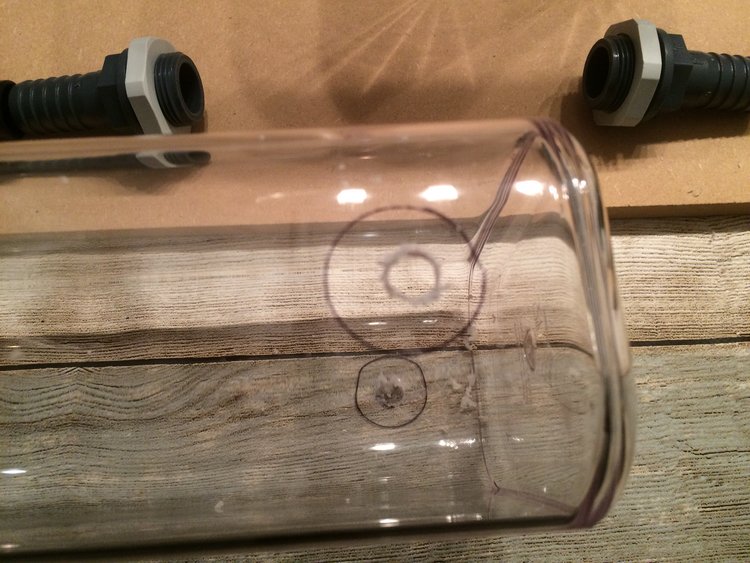 Die Position der Löcher wurde festgelegt und weil ich die Länge des Laufweges so kurz wie möglich halten möchte, befinden sich die Löcher fast am Boden der Behälter. Bohren Sie zuerst ein kleines Loch mit einem sehr kleinen Bohrer, dann verwenden Sie einen größeren Bohrer und dann den Cutter (oder wie immer Sie etwas nennen).