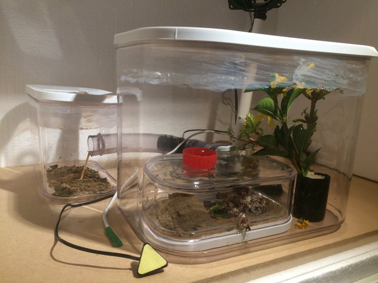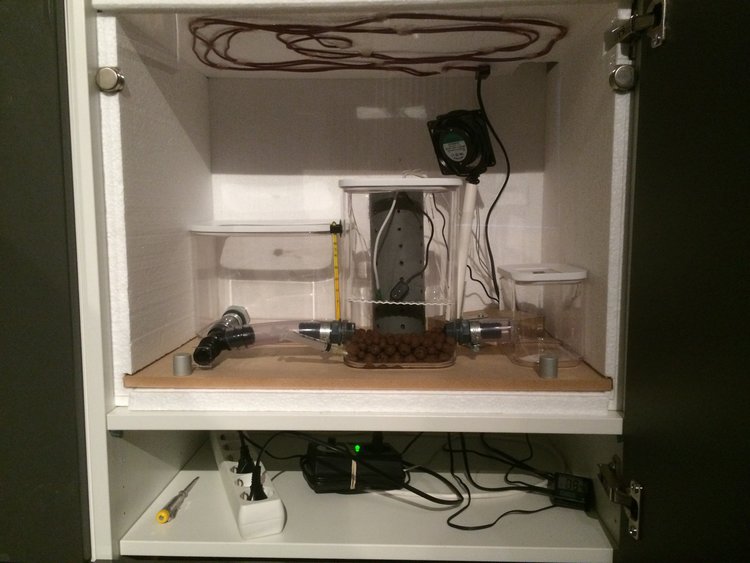 Im Folgenden sehen Sie, wie ich das Setup ursprünglich geplant habe. Zuerst habe ich ein paar Tage getestet, um zu sehen, ob ich Feuchtigkeit und Temperatur auf dem richtigen Niveau halten kann.