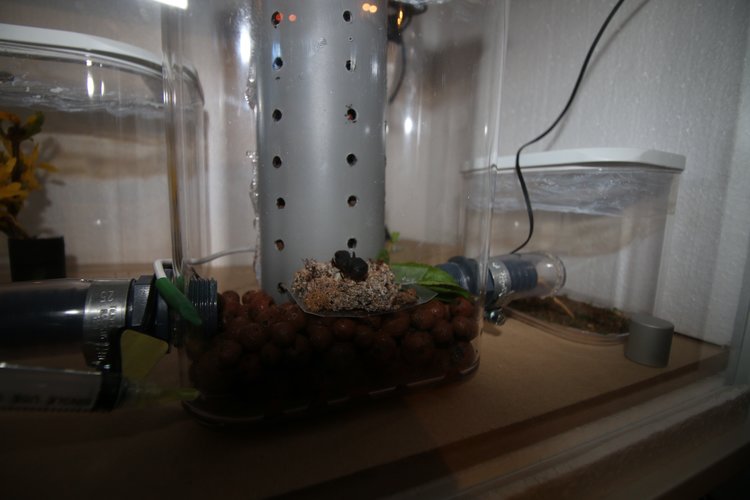 Allerdings hatte ich den Nestraum reduziert durch Kleben eines halbrunden mit Tongranulat gefüllten Rohres. Es stellte sich heraus, dass ich den falschen Leimtyp verwendet hatte, da sich der Leim aufgrund der feuchten Bedingungen lockerte. Einige Stunden bevor die Kolonie ins Formicarium gebracht wurde, musste ich deshalb einen Nothalt machen, weil die Tongranulate ins Nest zu fallen drohten. Um dies zu verhindern, habe ich schnell eine Stützversteifung mit Sekundenkleber angebracht. Dadurch konnte sich das Rohr nicht mehr verschieben. Sekundenkleber ist jedoch extrem aggressives Zeug. Es hat immer noch einen sehr aggressiven Geruch für eine lange Zeit abgegeben. Trotzdem musste die Kolonie zu einem bestimmten Zeitpunkt transferiert werden.