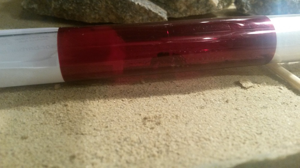 Über einen 1m Schlauch (Durchmesser 10mm) ist eine Farm mit Sand-Lehm Mischung angeschlossen. An die Rückseite der Farm ist eine 7 Watt Heizmatte mit Tesa Film geklebt, welches das Nest einseitig auf 27°-30°C erwärmt (Temperatur schwankt je nach Außentemperatur). Bild habe ich hierzu keines, da es da nichts großartiges zu sehen gibt^^.