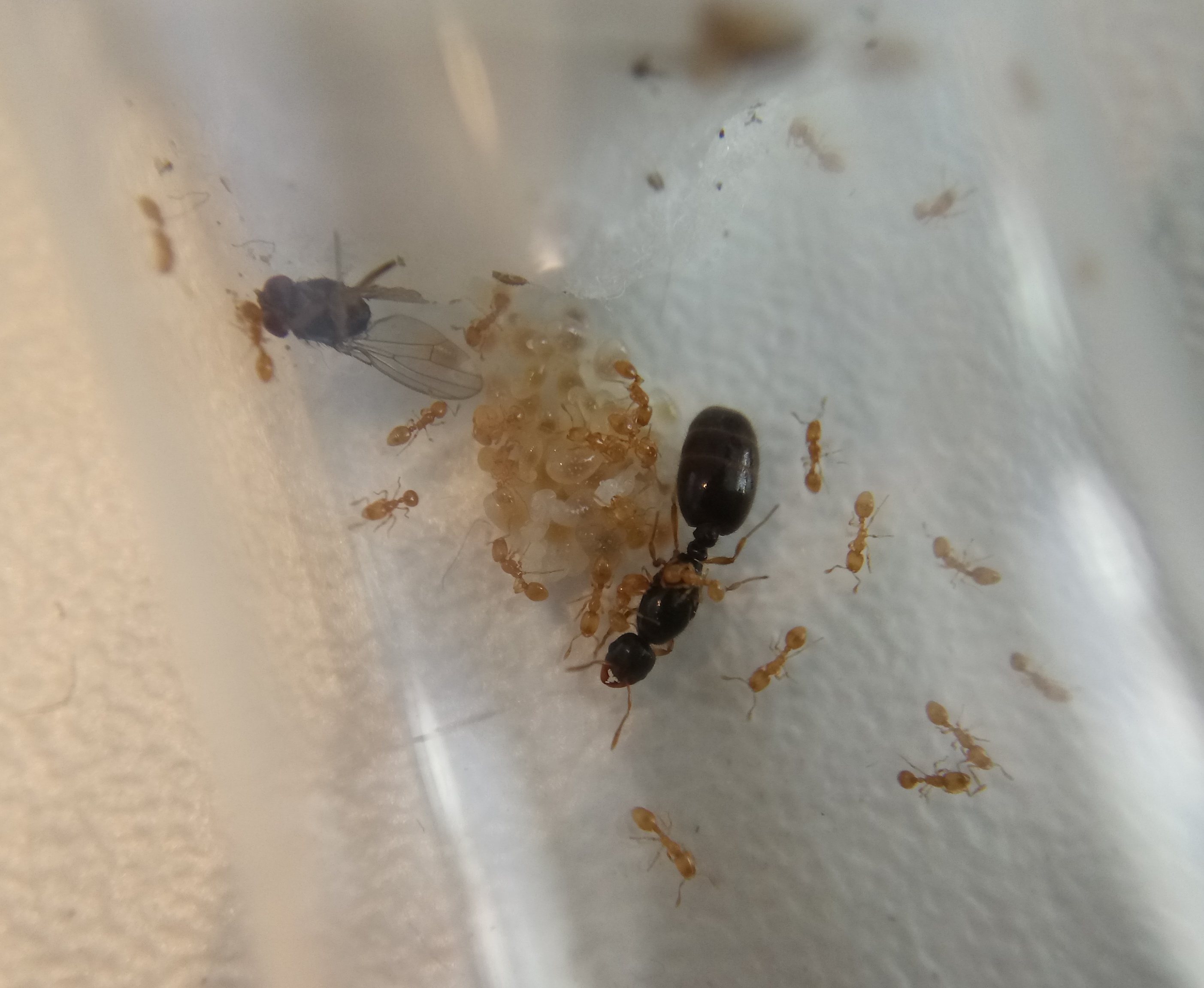 Brut ist auch vorhanden, Fruchtfliegen und Honig als Futter werden gut angenommen.