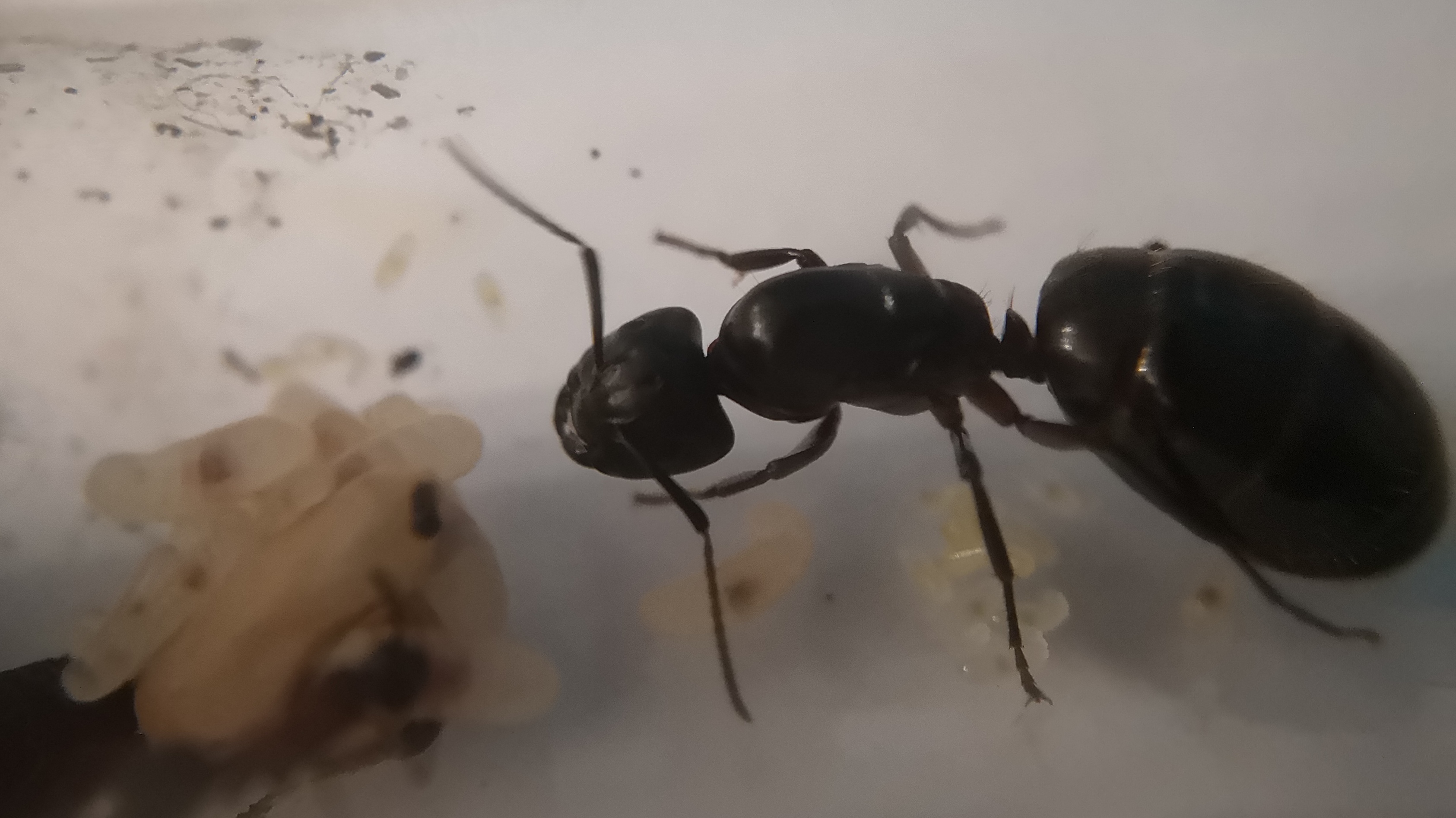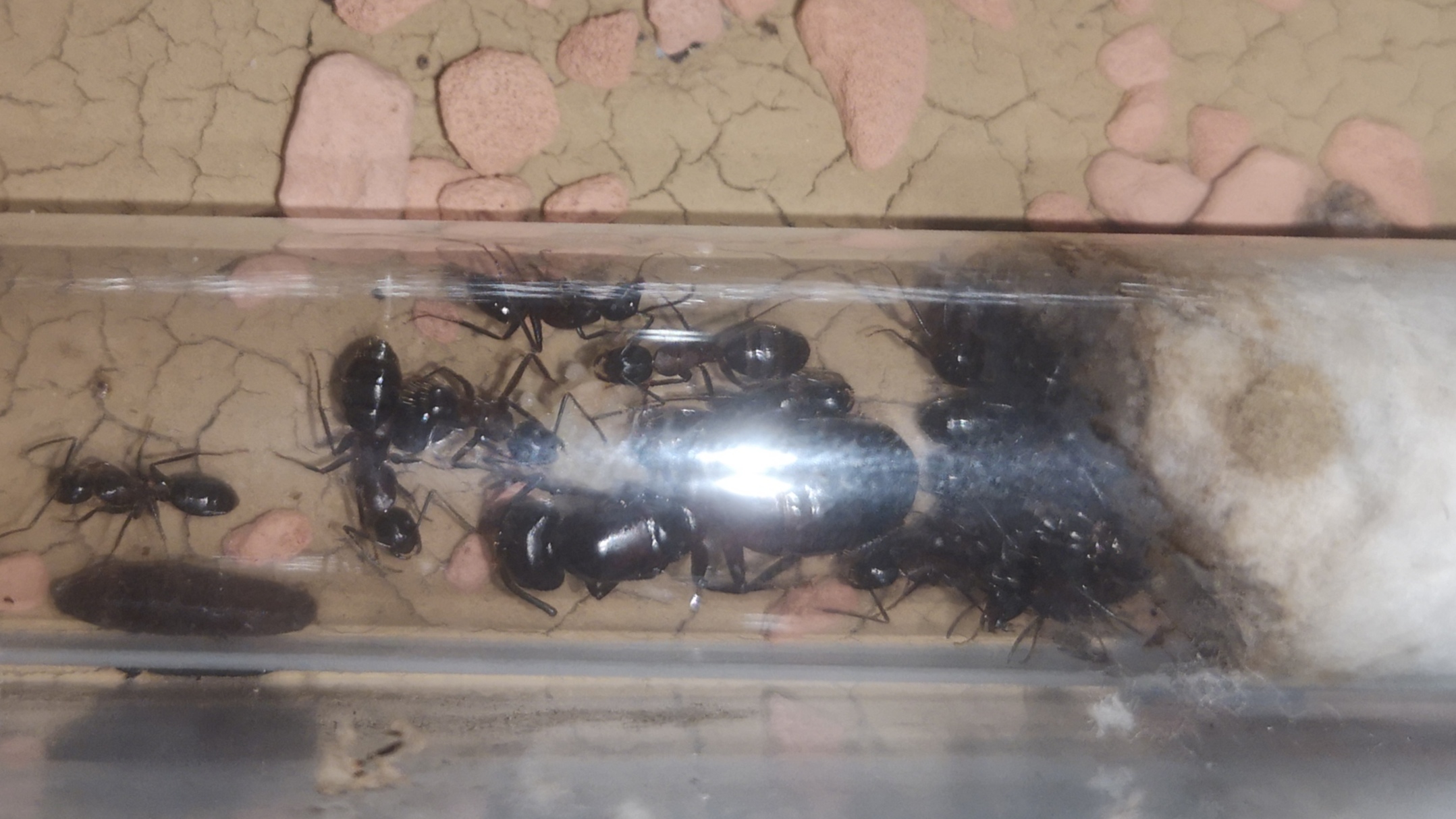Camponotus herculeanus hält sich die Entwicklung in Grenzen. Die Kolonie dürfte seit dem letzten Update um 4 Arbeiterinnen gewachsen sein (5