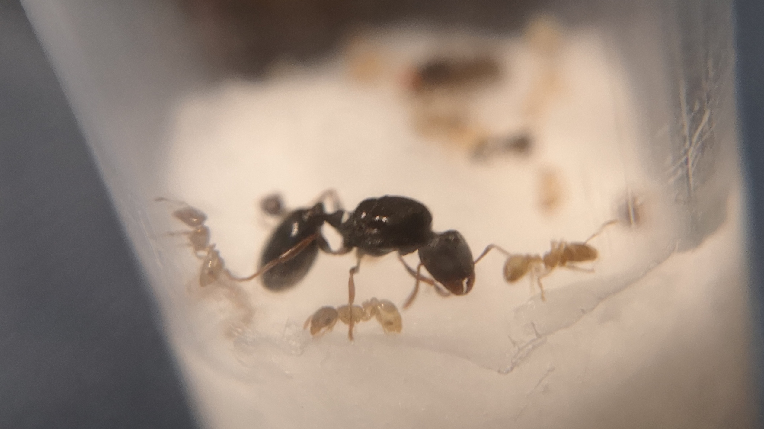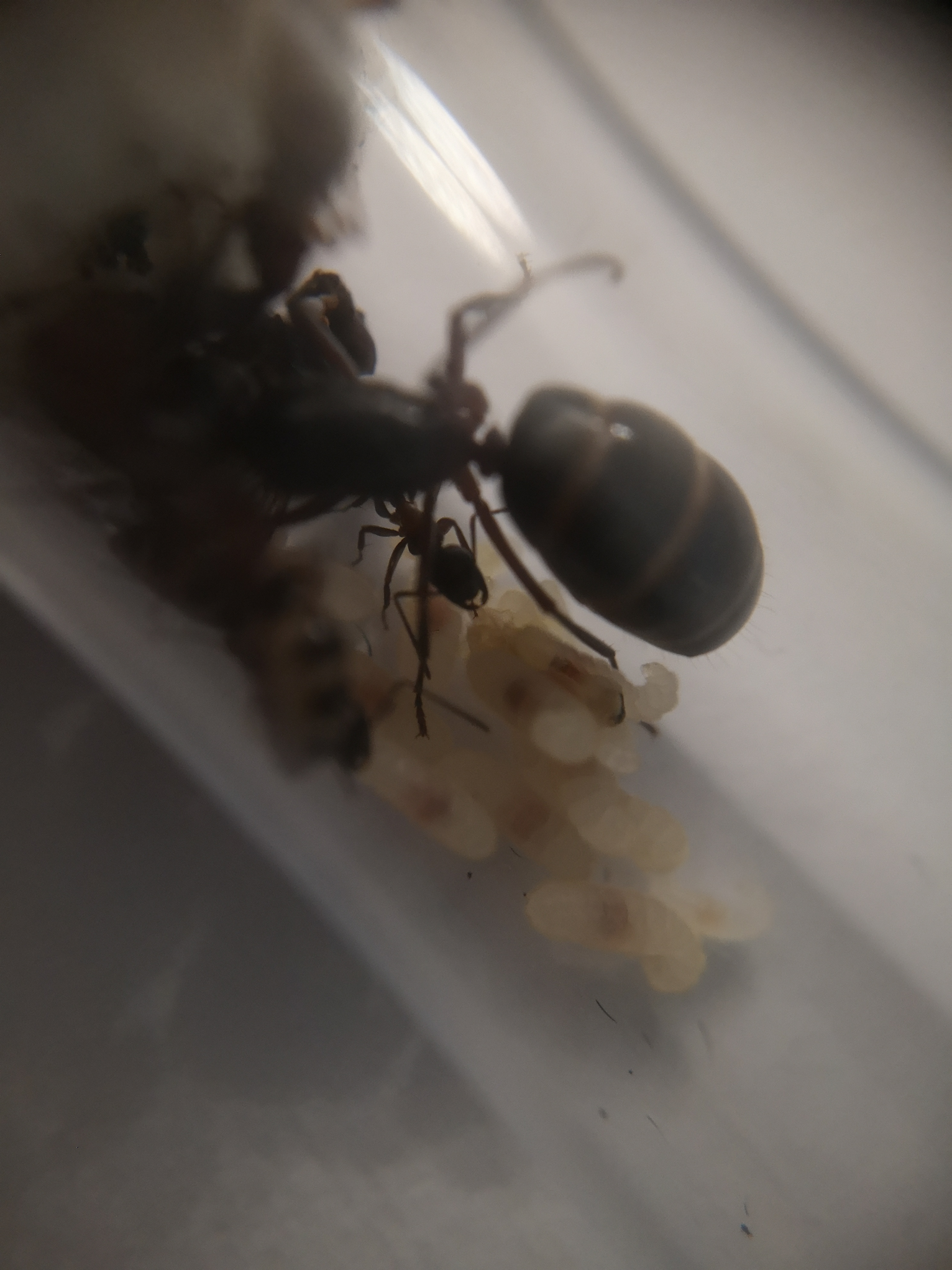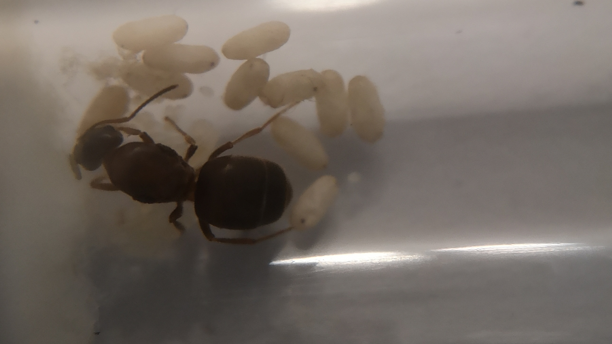 Myrmica Gyne nehme ich in den HB auf, sobald sie genug Arbeiterinnen hat, dass ich eine zur Bestimmung entnehmen kann.