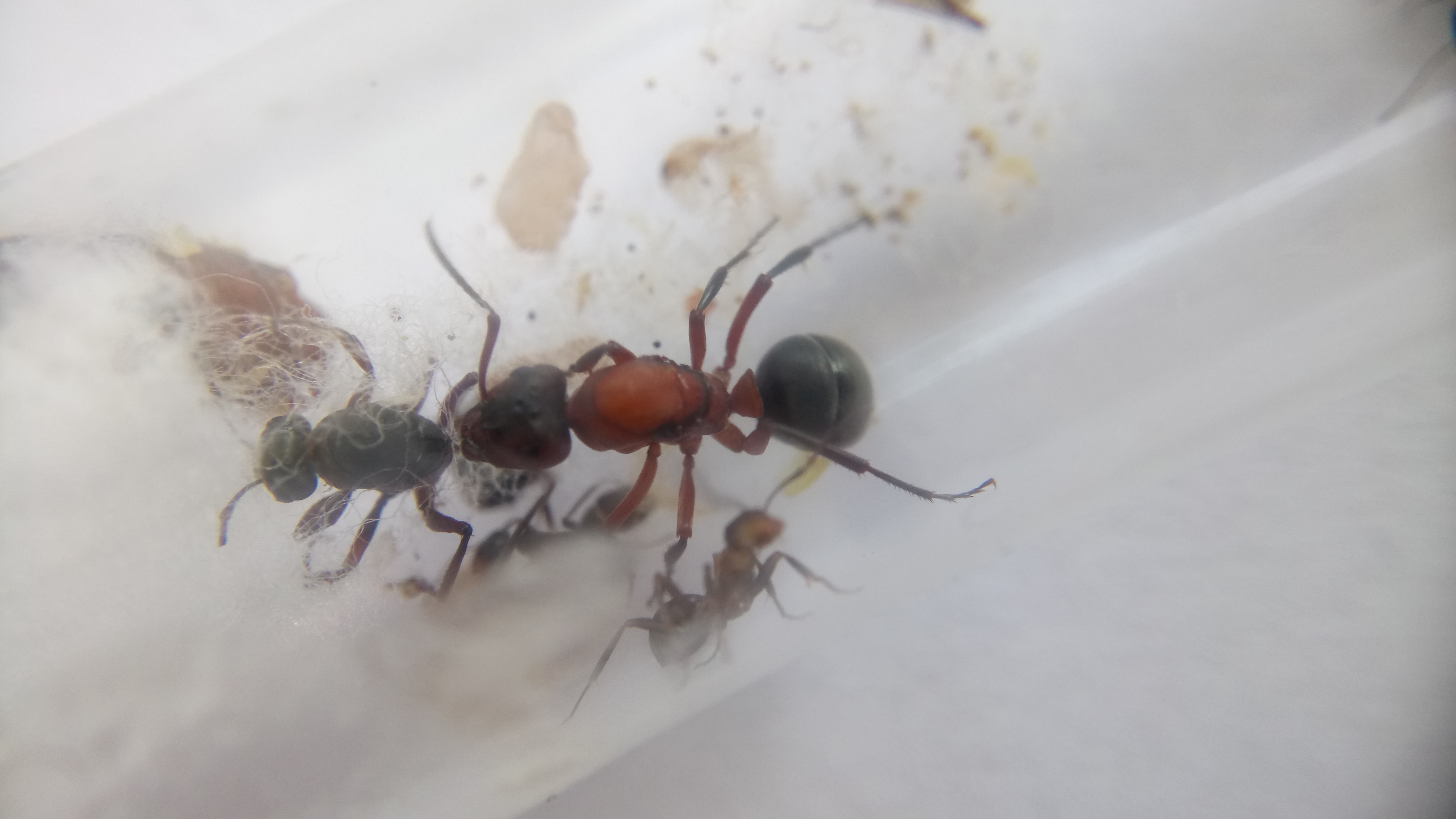 Ein Versuch, wie er wohl nicht oft gemacht wird. Ich lasse eine Formica cunicularia und Raptiformica sanguinea