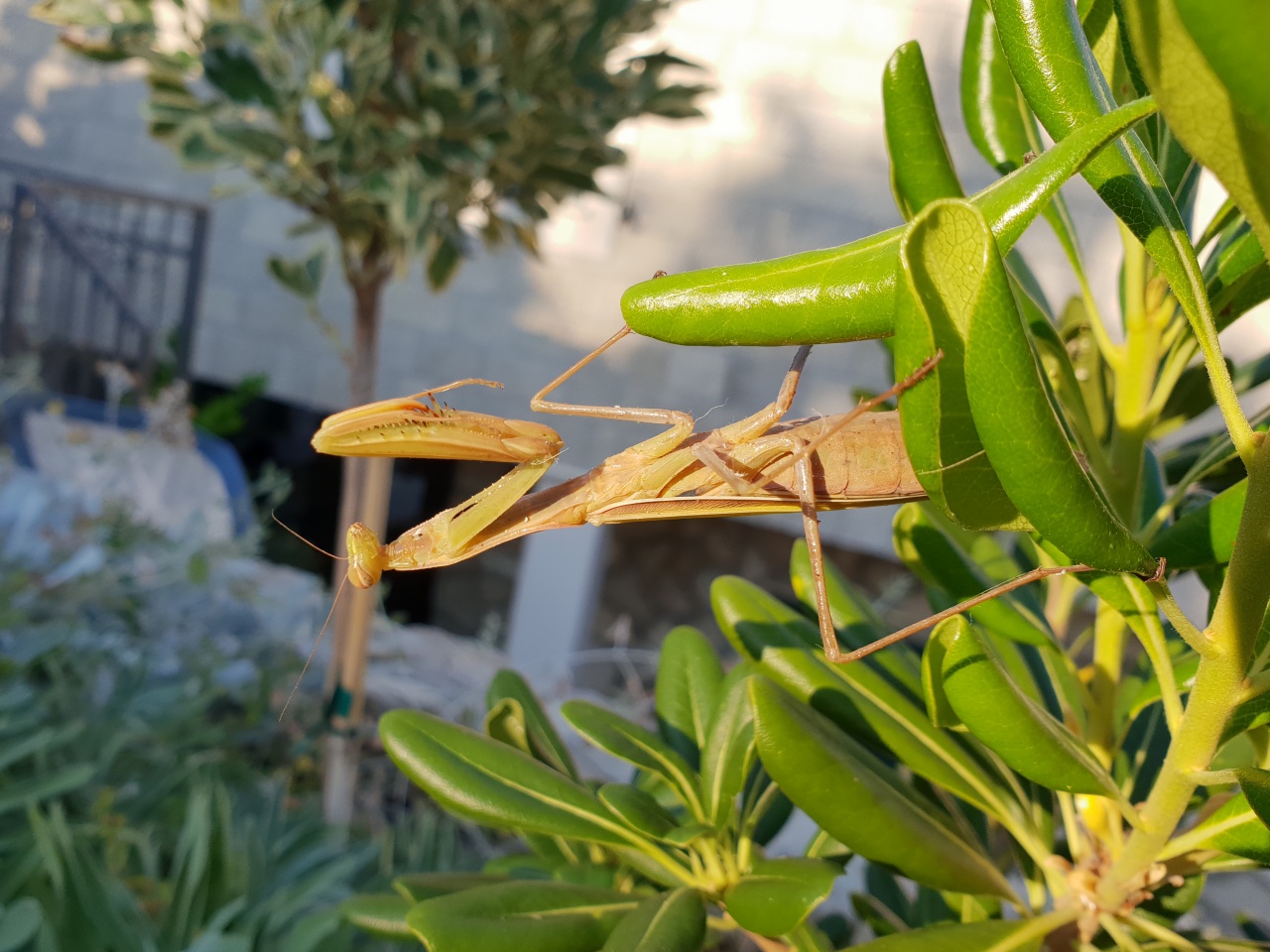Hier auf den bereits recht groß gewachsenen Agaven, wartete eine Gottesanbeterin (Mantis religiosa) darauf, dass die Sonne ihr Wärme spendet.