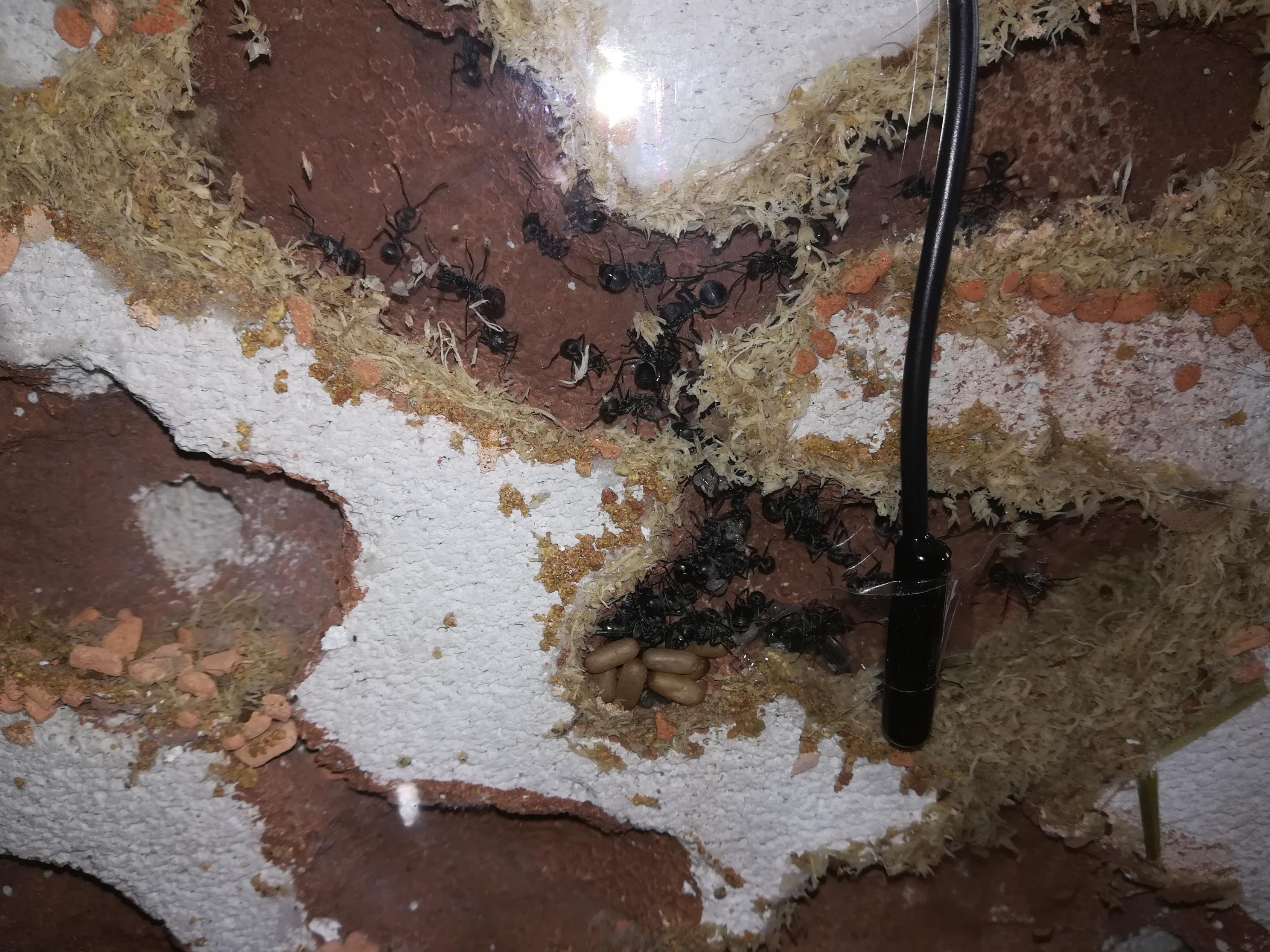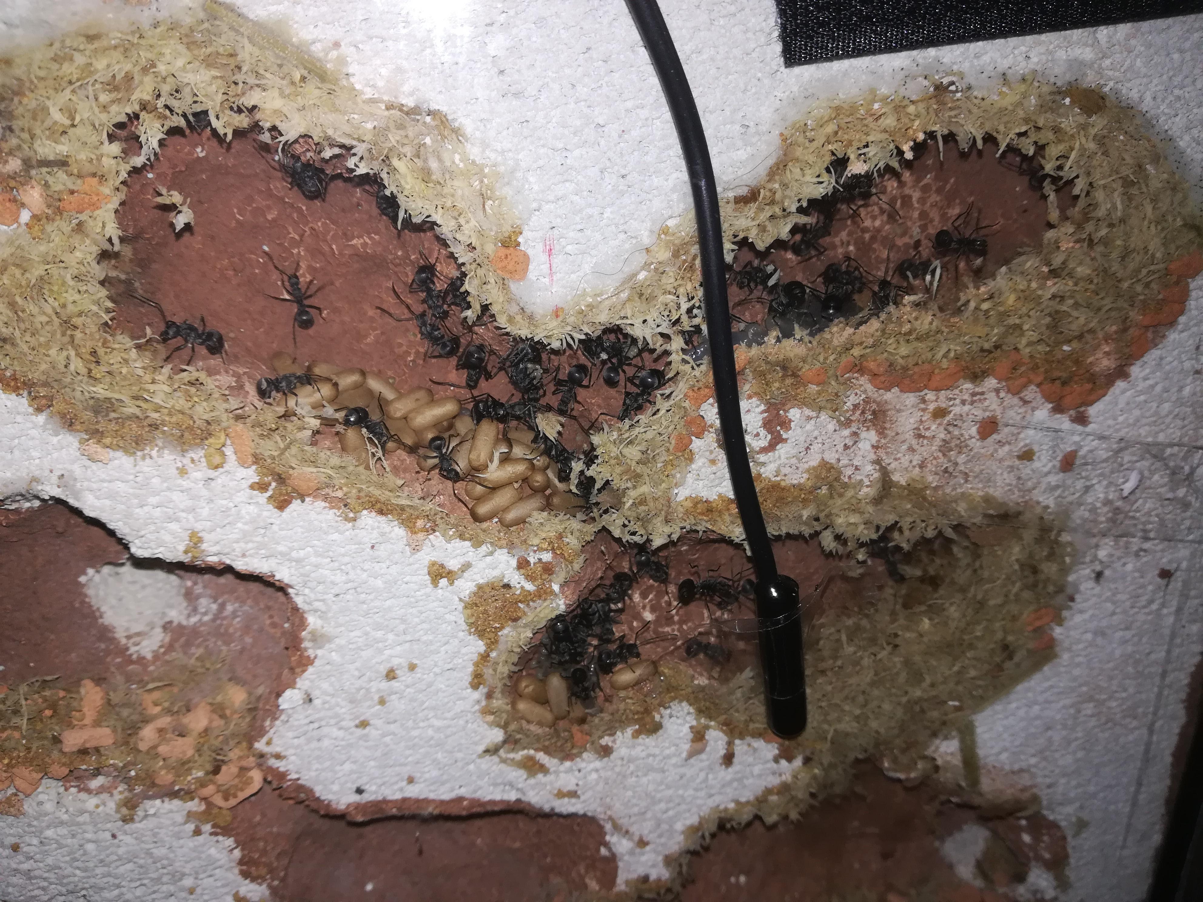 Seither waren die Schistacken beschĂ€ftigt die LĂŒcken zwischen Ytong und Glas mit Sphagnum-Moos und Watte aufzufĂŒllen, haben die zwei, drei Kammern die sie bewohnen versiegelt (die durchgĂ€nge zu den nebenliegenden Kammern verschlossen) und damit begonnen ihre