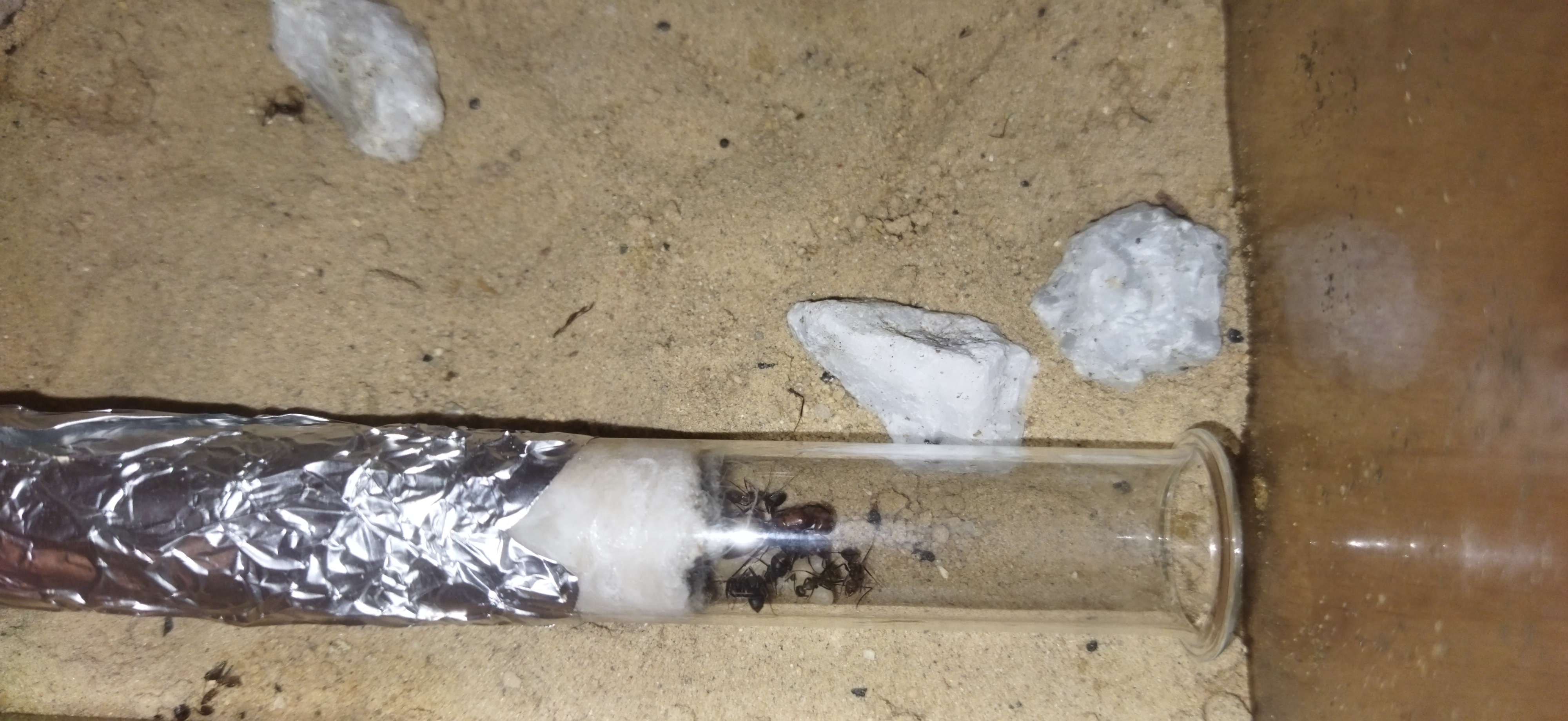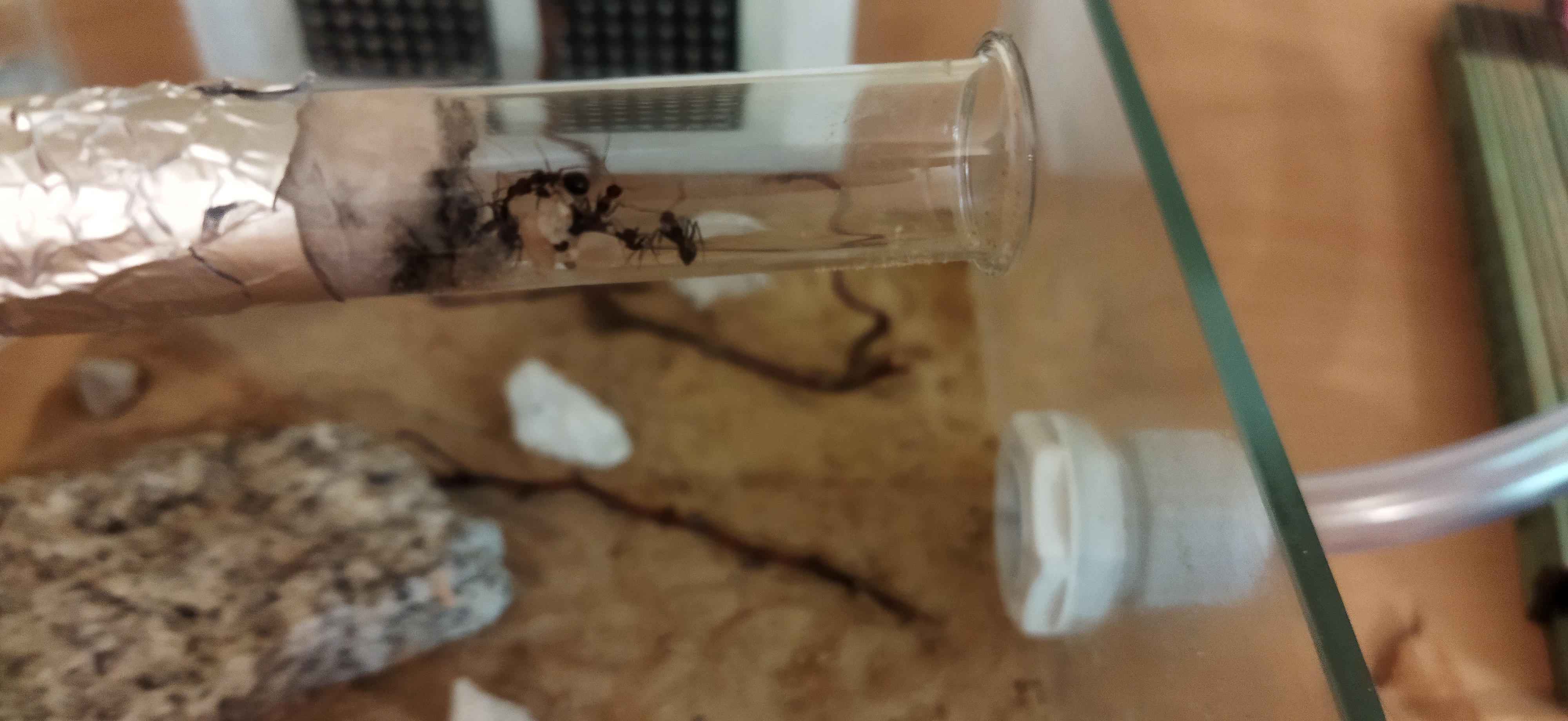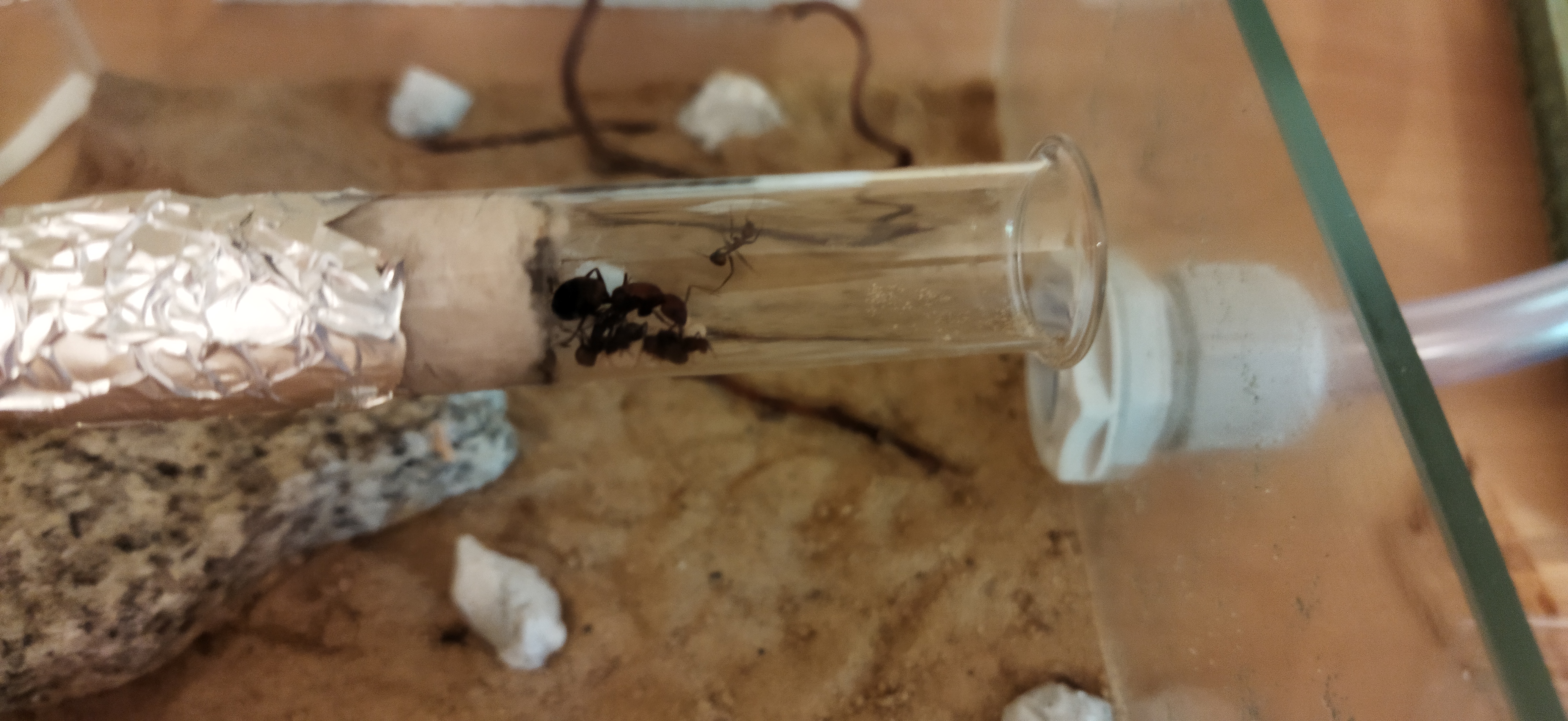 Eine Frage habe ich aber direkt: Im Moment ist das Reagenzglas nicht abgedunkelt, aber das scheint die Ameisen nicht besonders zu stören. Sollte ich das noch abdunkeln?