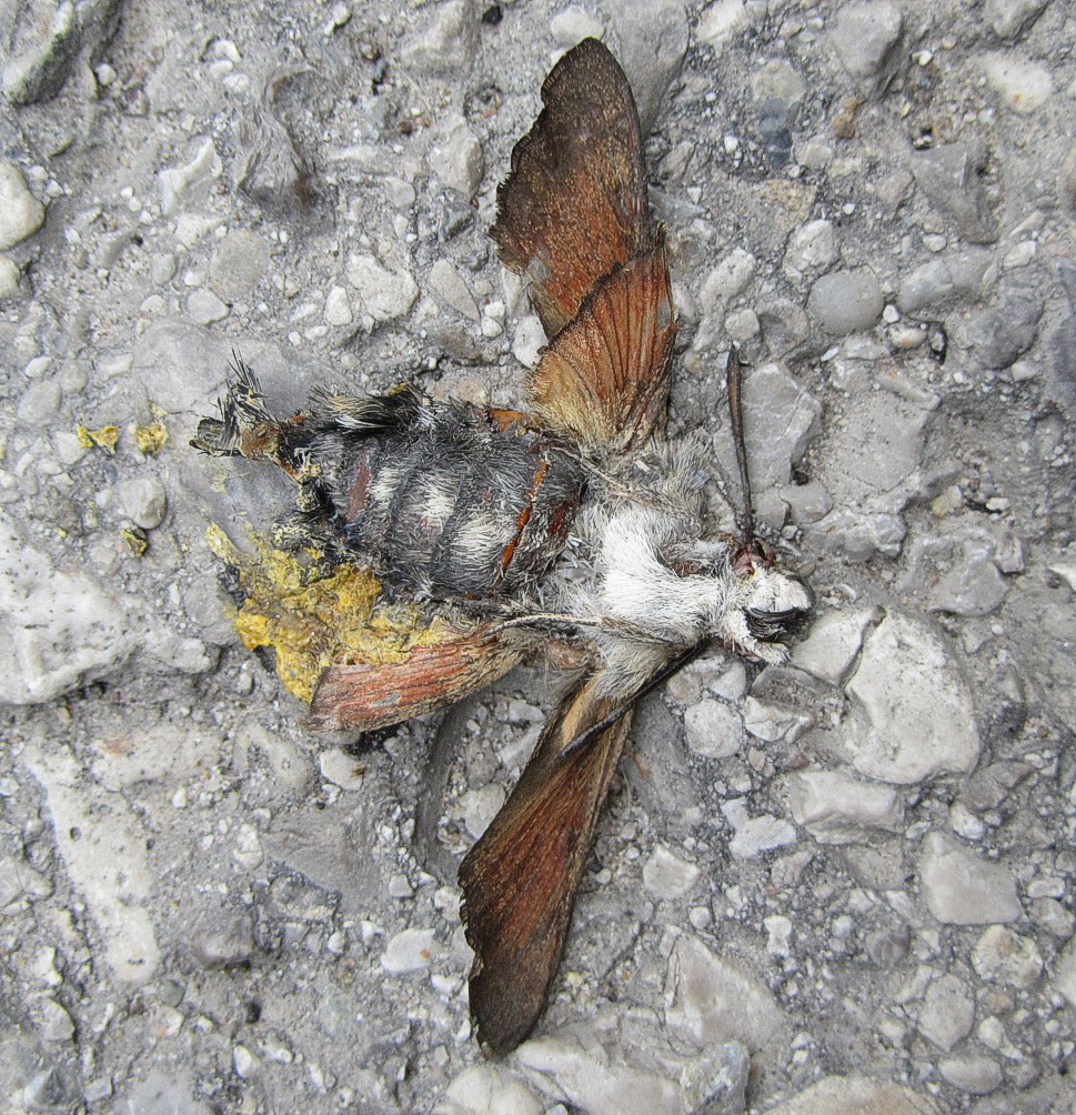 Und da flog ein Taubenschwänzchen in die Garage, flatterte längere Zeit an einer der Neonröhren und ließ sich dann dort nieder!