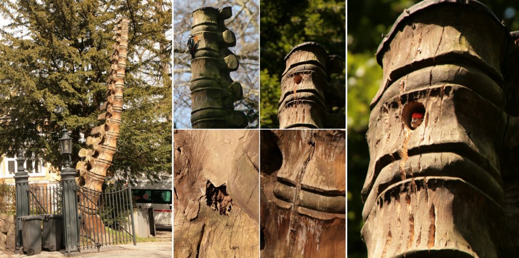 Diese Ulme steht in Flensburg vor der Praxis (m)eines Orthopäden und war nicht mehr zu retten. Statt sie zu fällen, ließ er sie von einer Kunstschule bearbeiten und mit Stahlseilen stabilisieren.
