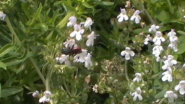 Ja, ich glaube das war eher eine Blutbiene, weil der Gaster rot war und der Thorax blauschwarz und ich keinen besonderen Glanz in Erinnerung hab.
