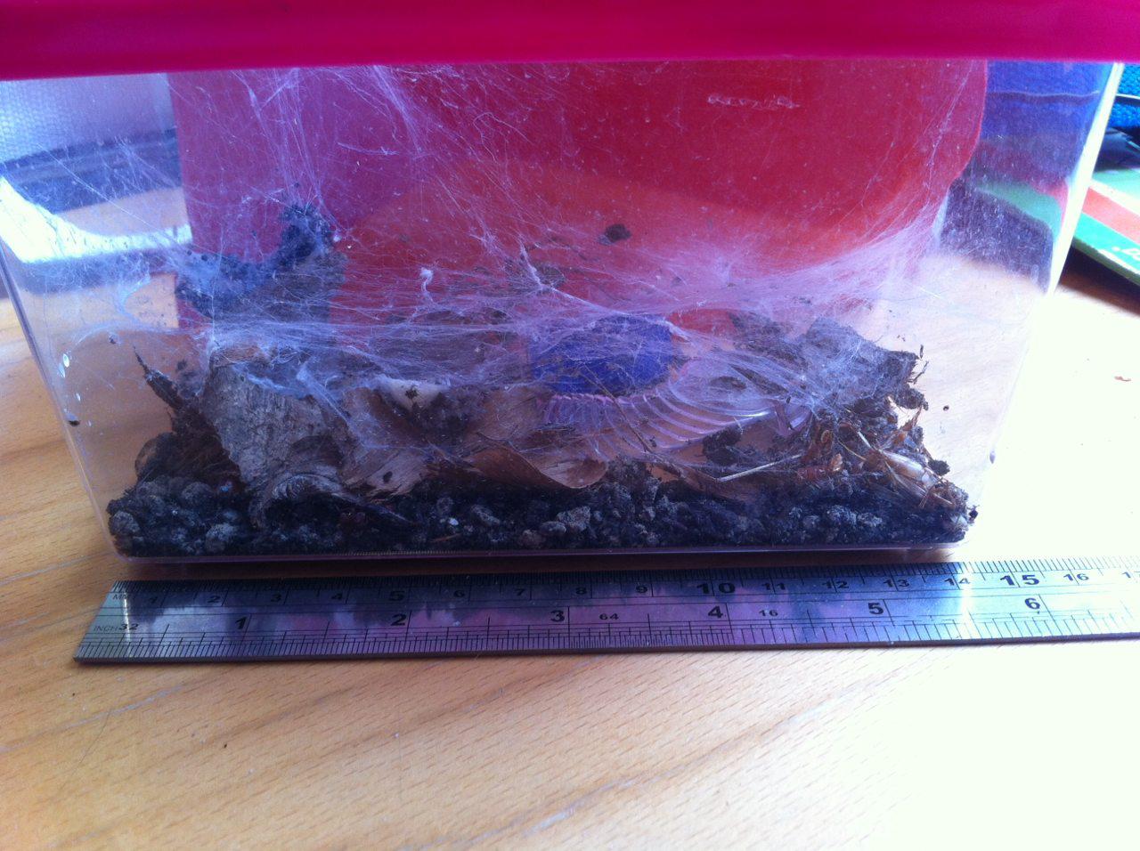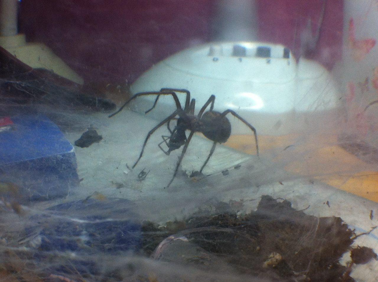 Weil es mir solchen Spaß gemacht hat, die Spinne zu beobachten, habe ich die nĂ€chste Winkelspinne die ich sah eingesammelt. Sie ist stĂ€mmiger und frisst alles was ich ihr ins Becken werfe. :D Auch ausgehĂ€rtete MehlwĂŒrmer finden bei ihr Verwendung. Der Panzer wird einfach geknackt.