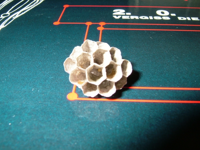 Hallo shar! Das ist ein kleines Nest einer Feldwespe, vielleicht von Polistes dominulus. Es beweist, dass das "neue" Auto etwa 3-4 Wochen am gleichen Platz gestanden hat. Hier habe ich ein Bild eines etwa gleich groĂen Nestes mit der Königin, in diesem Falle allerdings Polistes nimpha. http://picmirror.de/bild.php/13604_pict0390pol1.png