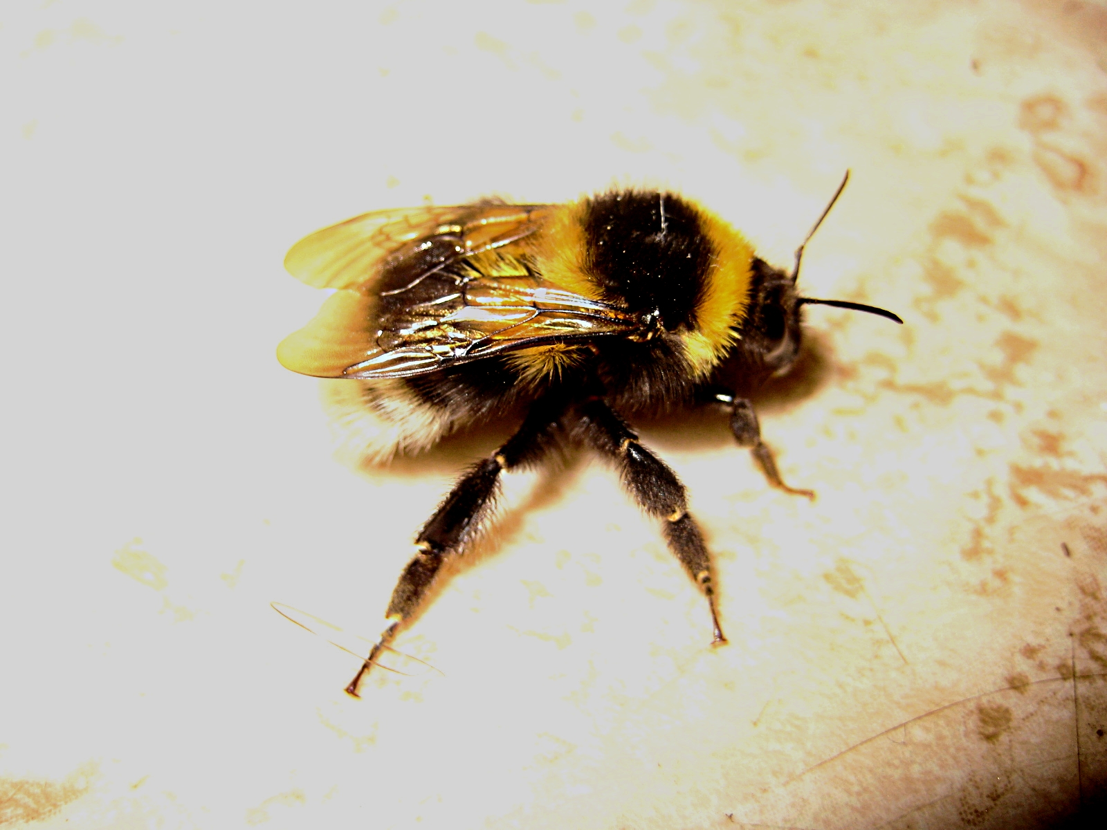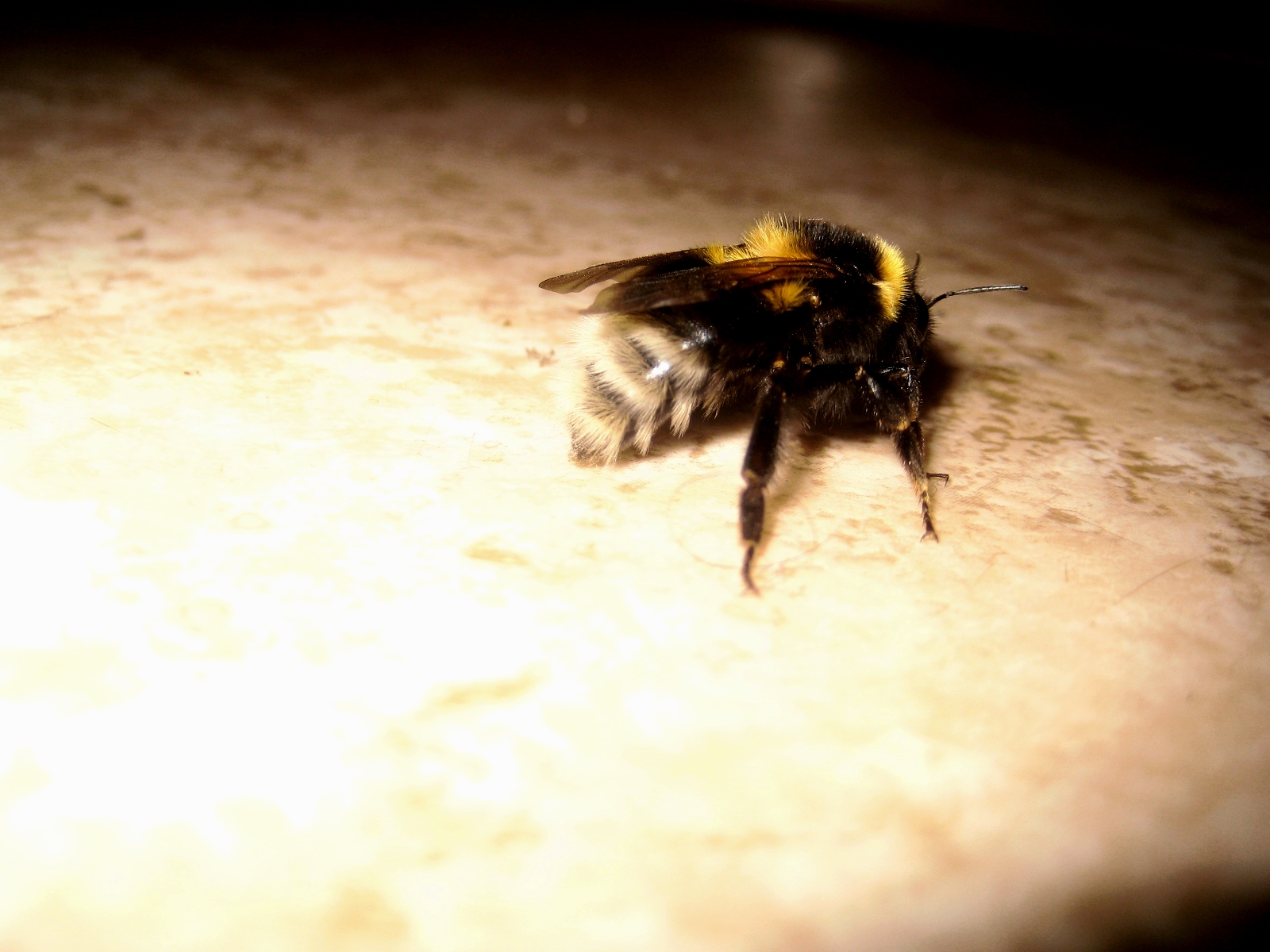 Als ich heute gegen 18.00 das Haus verlassen wollte, krabbelte diese Hummel auf dem Boden herum: