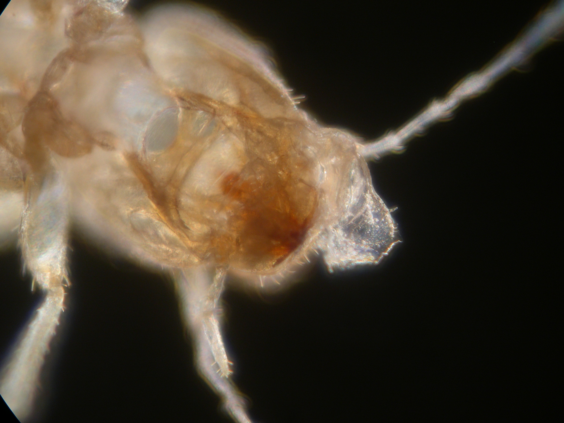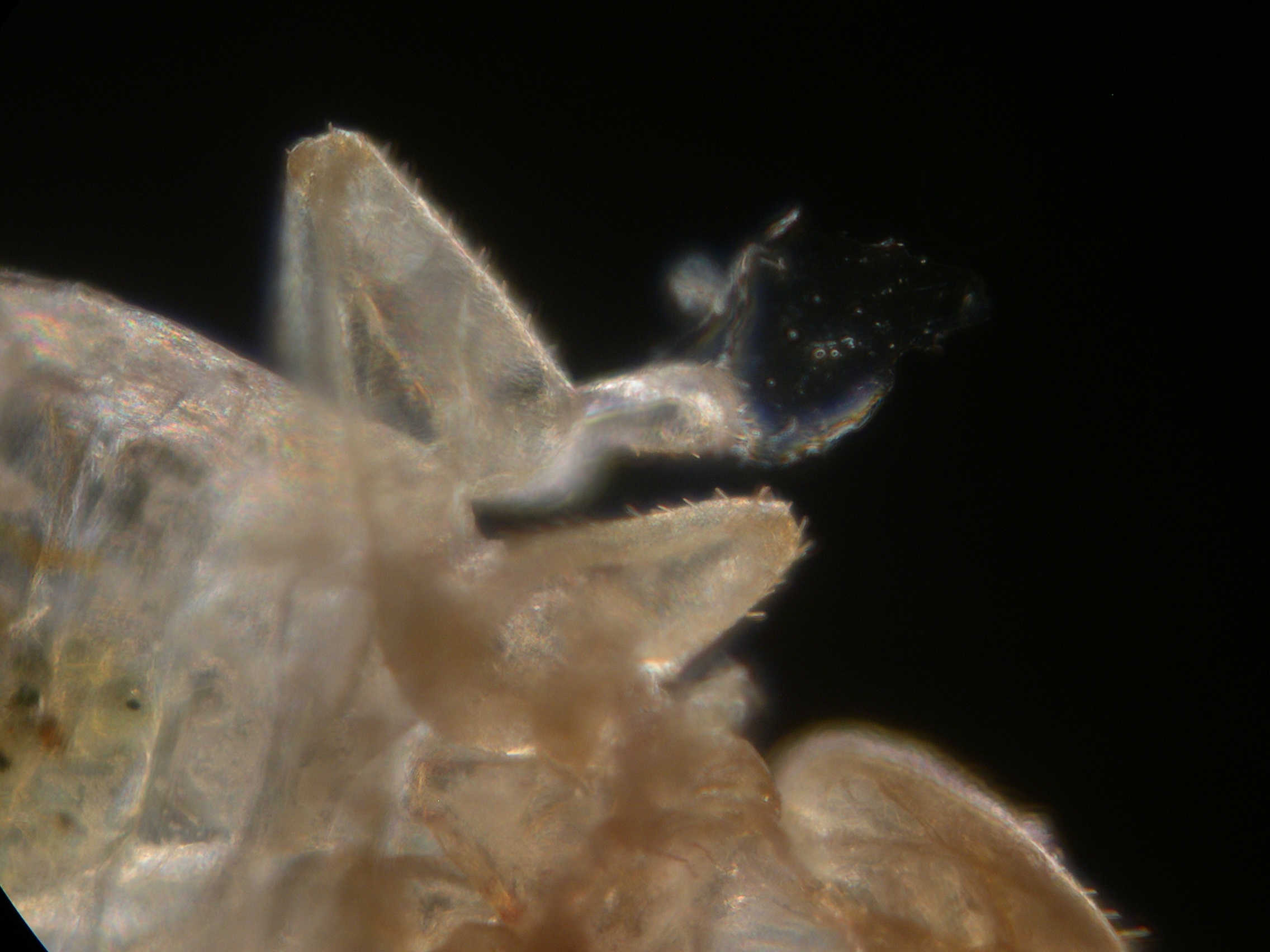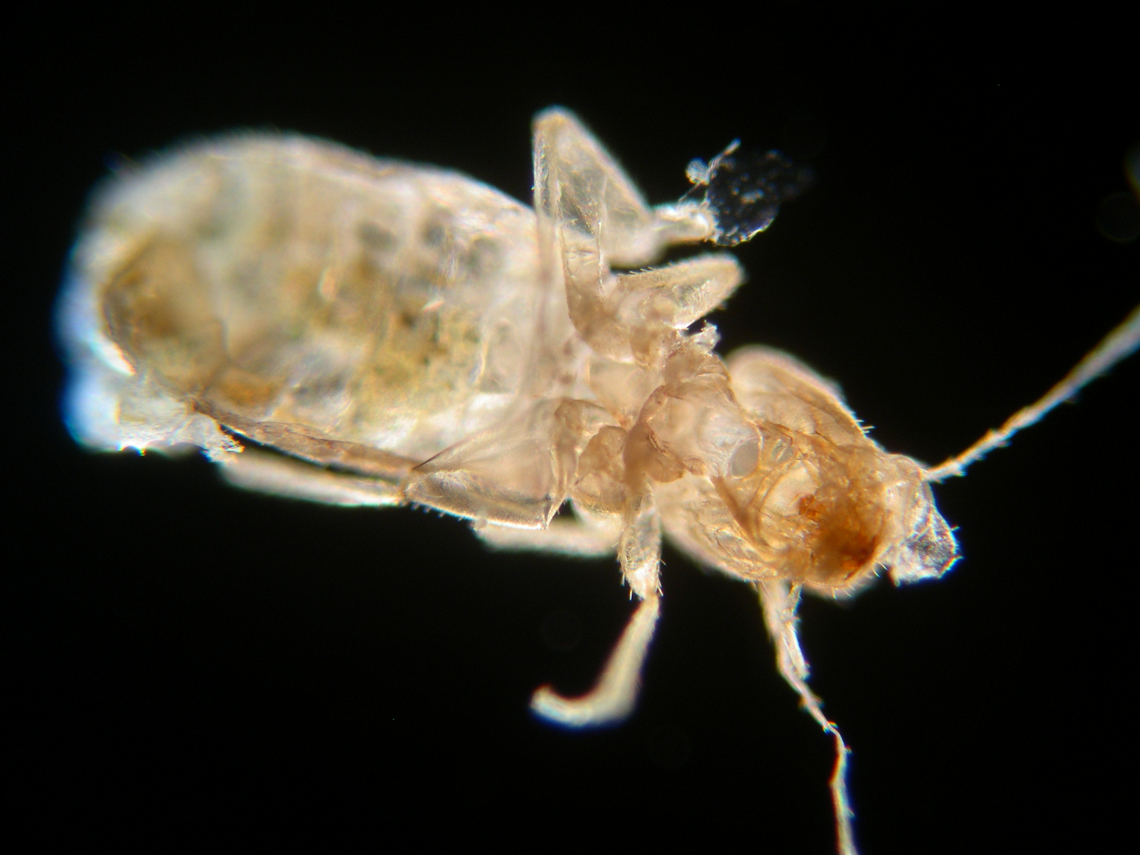 Ich habe zur Zeit in meiner Küche ungebetene Mitbewohner. Sie sind ziemlich hartnäckig und befinden sich in Kartonverpackungen (Hefe, Milchreis) sowie in den Küchenschränken und auf der Fensterbank. Sie sind hellbraun-gelblich und mit 1-2 mm sehr klein. Der Kopf ist zur Hälfte dunkel gefärbt. An Süssigkeiten oder Zucker sind sie nicht rangegangen. Ich dachte zuerst es wären Maden, habe dann aber mit einer Lupe gesehen dass sie Füße und Fühler haben und einen segmentierten, aus Ringen bestehenden Hinterkörper. Da man auf Fotos aufgrund der Größe nichts erkennen kann, habe ich Mikroskopieaufnahmen im Hellfeld und Dunkelfeld angefertigt. Die Fotos habe ich angehängt, die Farben sind leider nicht richtig zu erkennen.