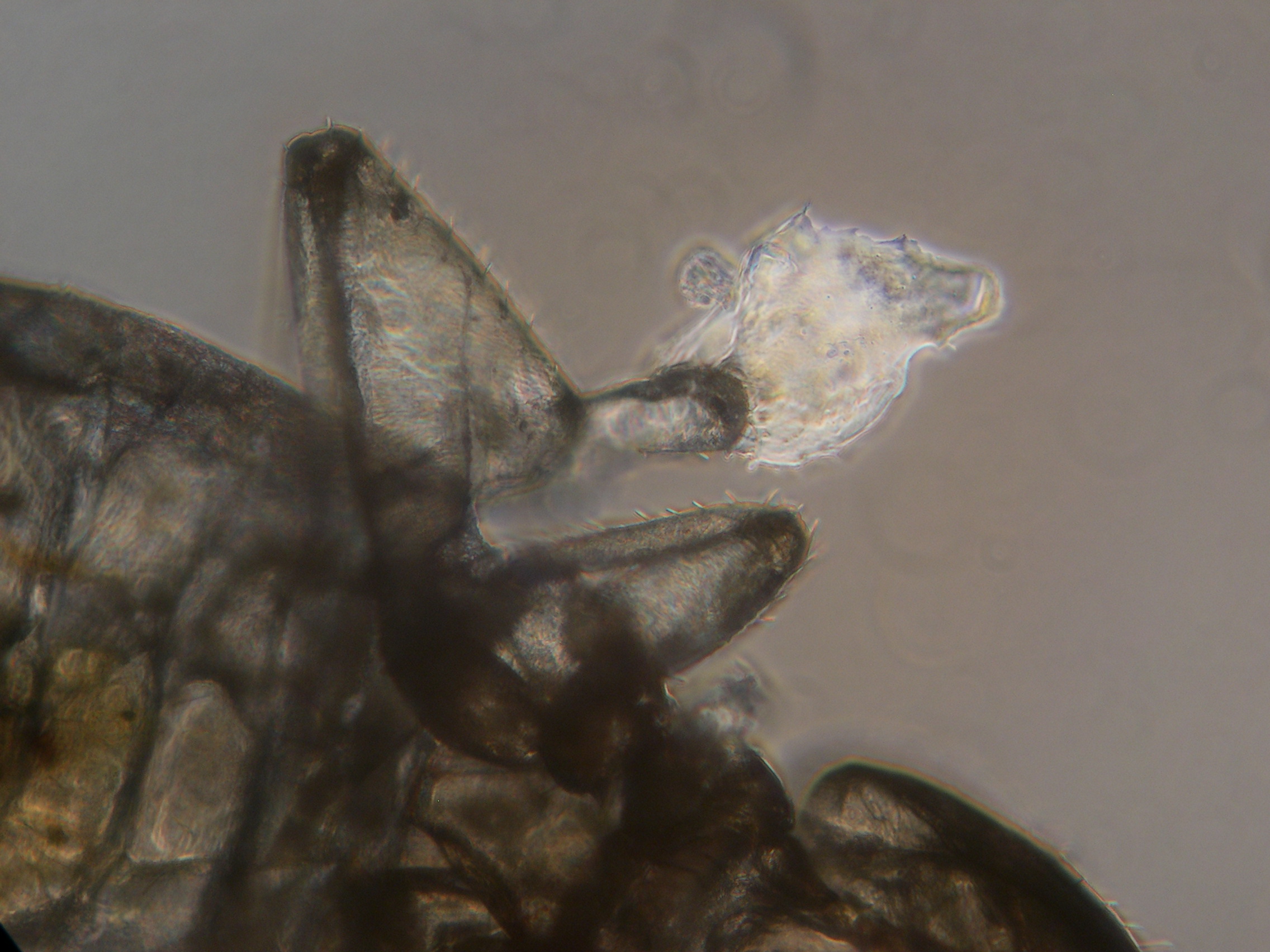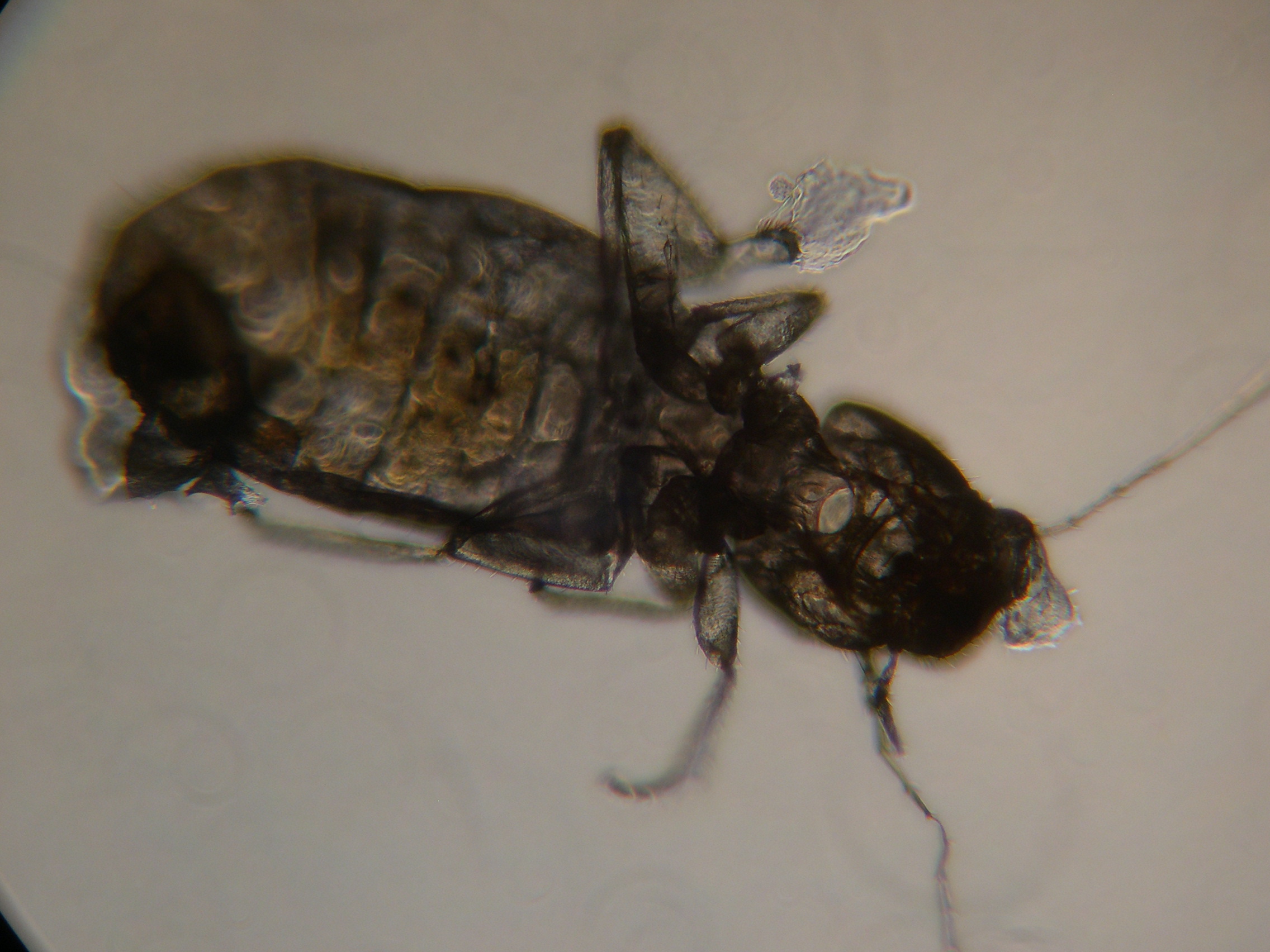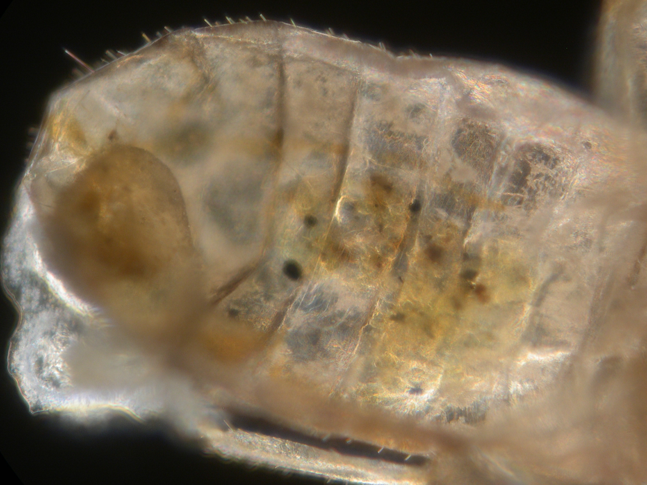 Ich habe zur Zeit in meiner Küche ungebetene Mitbewohner. Sie sind ziemlich hartnäckig und befinden sich in Kartonverpackungen (Hefe, Milchreis) sowie in den Küchenschränken und auf der Fensterbank. Sie sind hellbraun-gelblich und mit 1-2 mm sehr klein. Der Kopf ist zur Hälfte dunkel gefärbt. An Süssigkeiten oder Zucker sind sie nicht rangegangen. Ich dachte zuerst es wären Maden, habe dann aber mit einer Lupe gesehen dass sie Füße und Fühler haben und einen segmentierten, aus Ringen bestehenden Hinterkörper. Da man auf Fotos aufgrund der Größe nichts erkennen kann, habe ich Mikroskopieaufnahmen im Hellfeld und Dunkelfeld angefertigt. Die Fotos habe ich angehängt, die Farben sind leider nicht richtig zu erkennen.