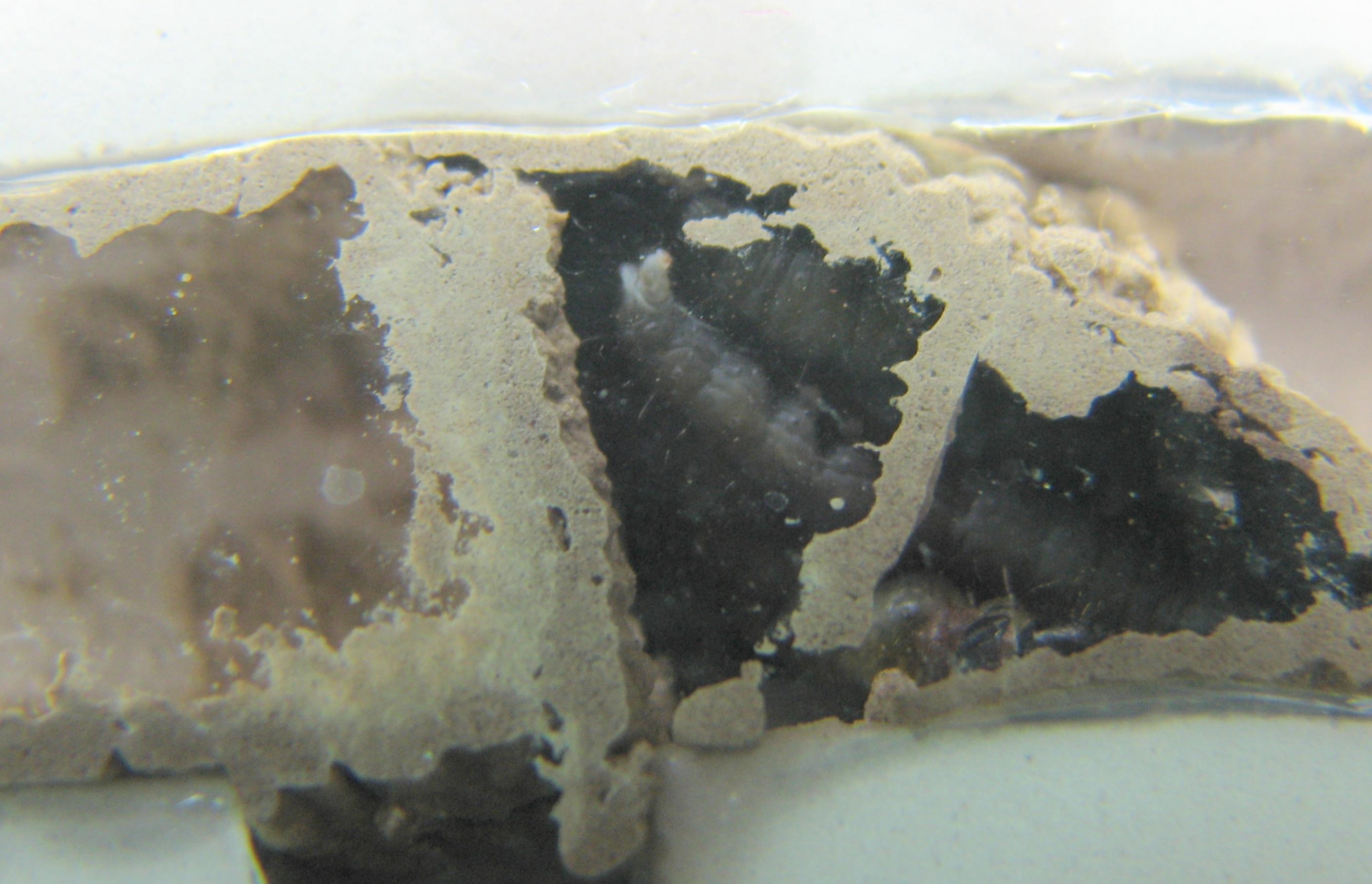 Heute dann die große Überraschung: Aus dem Augenwinkel sah ich einen dunklen Fleck mittendrin. Erster Gedanke: Hä - wie kommt denn der Dreck da rein? Seht selbst...
