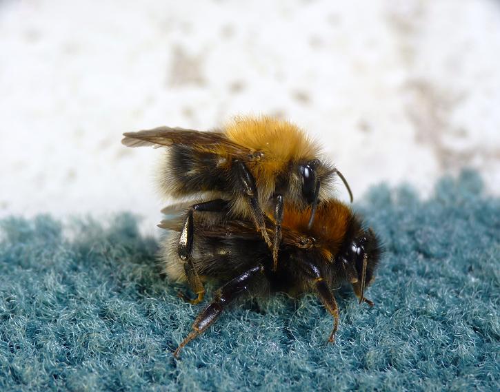 Eben ist mir etwas tolles ins Auge gefallen, eine Hummel Paarung, warscheinlich stammen die aus der Nest was sie auf meinen Balkon haben (da habe ich sie auch Fotografiert ).