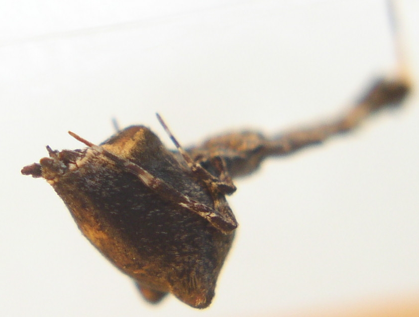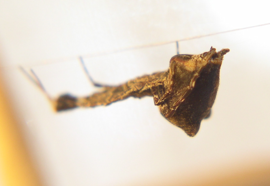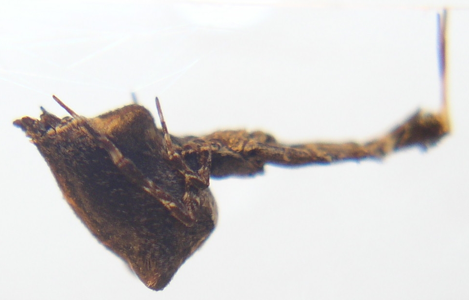 Kleinere Exemplare haben kein so groĂes "Hinterteil" und sind mit bloĂem Auge nicht als Spinne zu erkennen, eher als "Blatt", das sich im Netz verfangen hat.