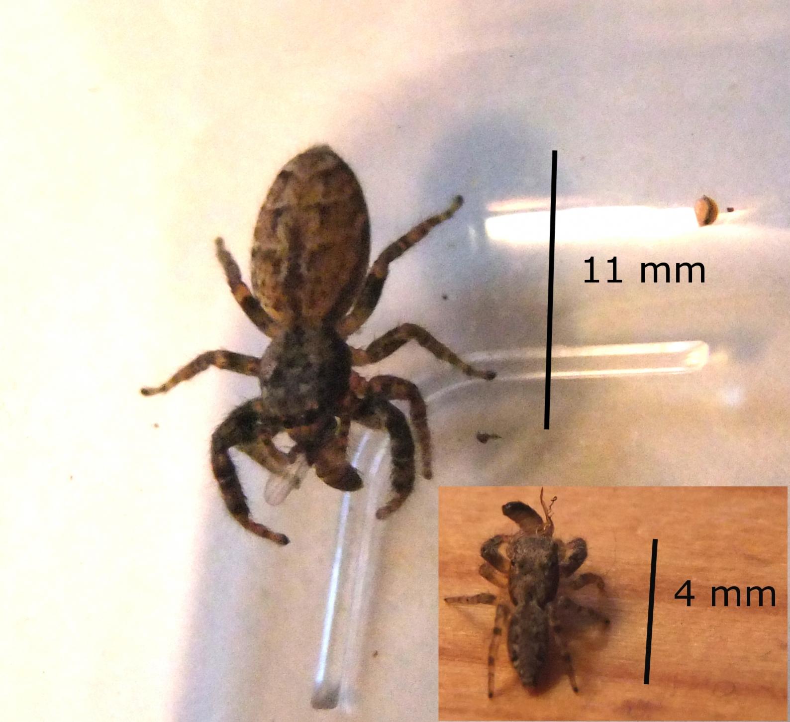 Allerdings handelt es sich bei der kleinen Spinne nicht um ein MĂ€nnchen, sondern lediglich um ein Jungtier der selben Art.