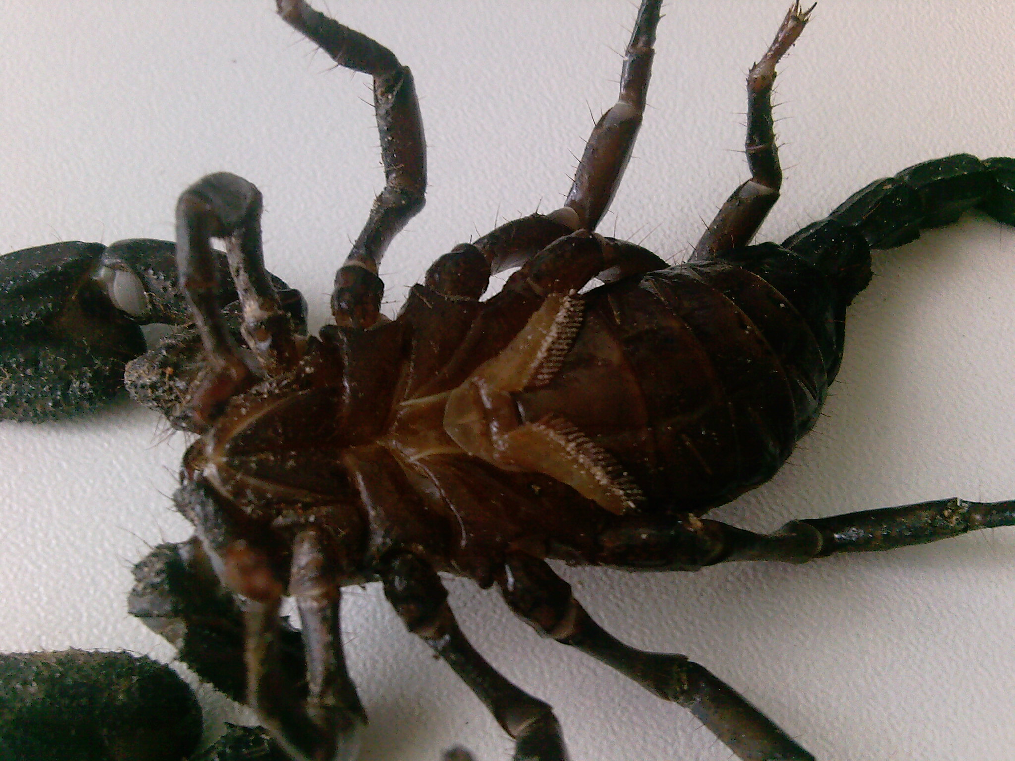 Zur Geschlechtsbestimmung musst du auf jedenfall den Kamm angucken der sich meistens auf der Unterseite des Skorpions befindet