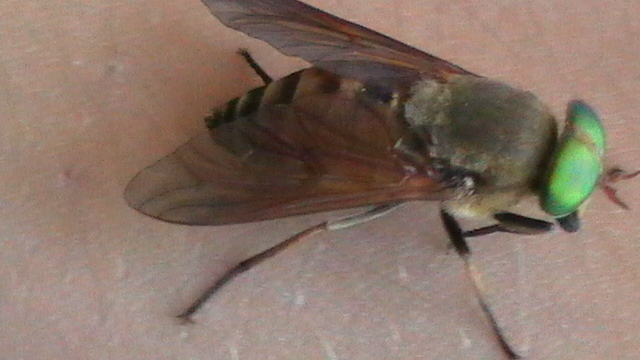 8. Das ist keine Schwebfliege, sondern eine Bremsenart (Tabanidae). Sei also froh, dass Du nicht gestochen wurdest.