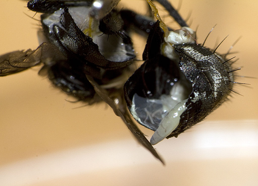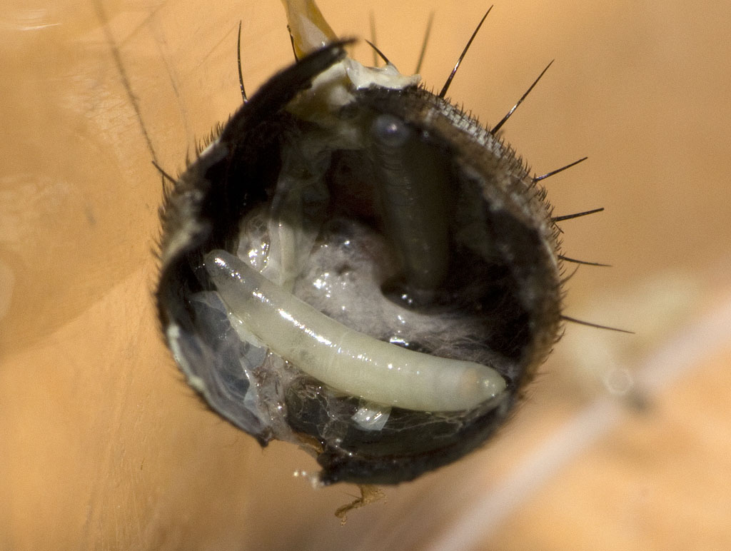 Ich konnte jetzt 10 Maden Ă  5mm zĂ€hlen. Ein Wunder, dass die Fliege ĂŒberhaupt noch fliegen konnte. Sie kam dann sogar wieder zu sich und wollte ohne Gaster flĂŒchten. Ich habe sie dann gleich getötet.