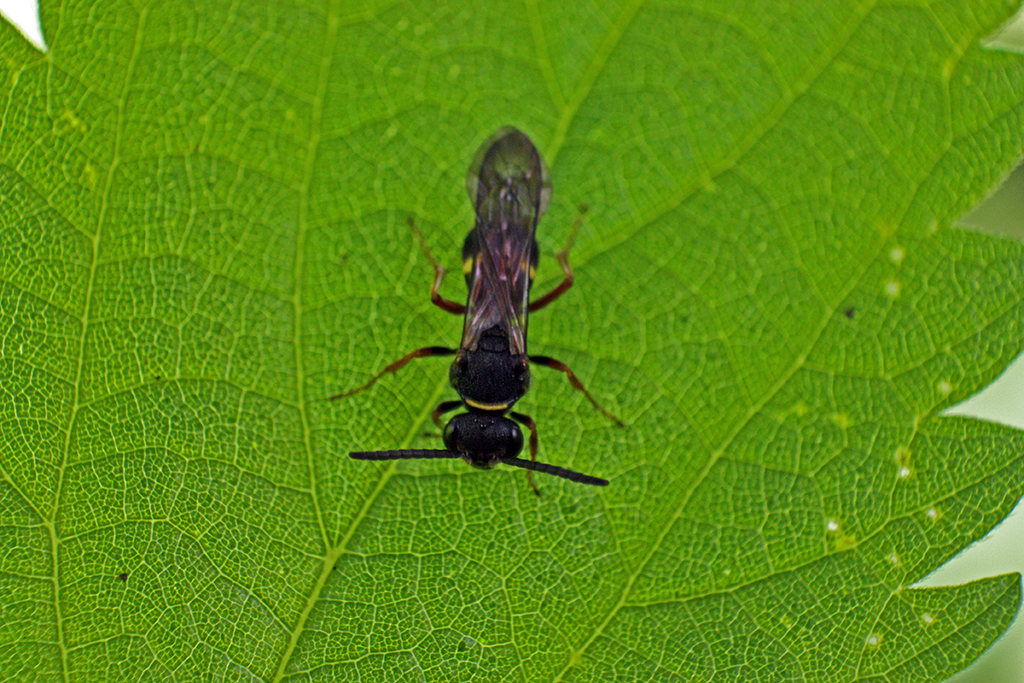 Foto 5: eine Ameise Myrmicasp beim Bewachen der Blattlauskolonie
