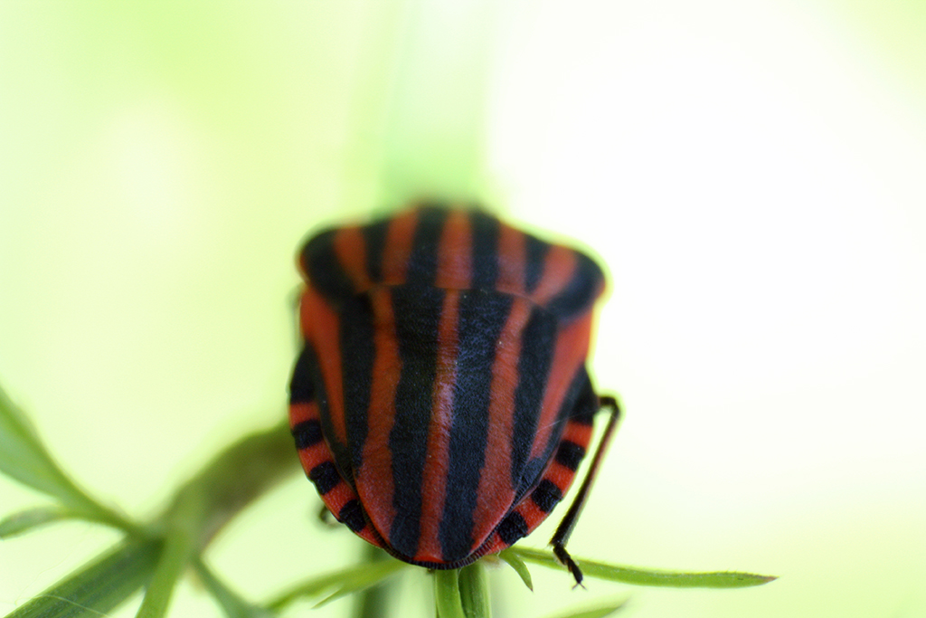 Foto 6: ein schwarzer Marienkäfer, leider etwas unscharf. Dafür spiegelt sich der Himmel auf seinem Rücken