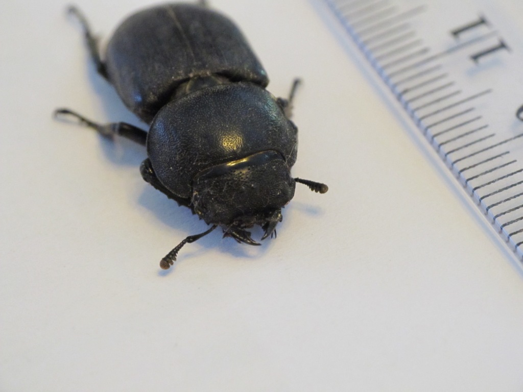 ich habe eben einen relativ großen (ca. 2,5 cm), schwarzen bis braun-schwarzen Käfer in einer leeren Gießkanne entdeckt (Fotos siehe unten). Leider hat die Sonne die ganze Zeit draufgeknallt, sodass der Kerl (oder die Dame) relativ apathisch in den Seilen hängt. Nach dem Besprühen mit Wasser und dem Versorgen mit einem feuchten Wattebausch kommt er langsam wieder zu sich.