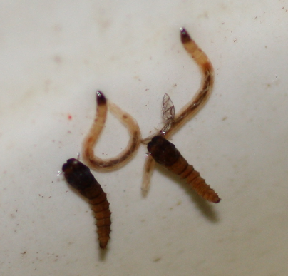 [font=Times New Roman]Schon auf inneren Einbandseiten findet man etwas unter âwurmförmige Insektenlarvenâ, das einen zu den ZweiflĂŒglern (Diptera) fĂŒhrt, und da trifft man rasch auf âZuckmĂŒckenlarvenâ (Nematocera, Chironomidae), die passend erscheinen. [/font]