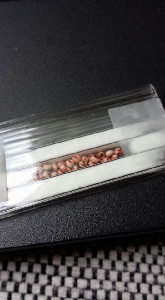 Menge der Eier sind 30, angekommen sind diese in einem kleinen praktisch in einem einfach Brief zu verpackendes flaches Gefäß, diese wurden jetzt von mir in eine Heimchendose mit feuchtem Küchenpapier getan, wo die Eier jetzt auf den Schlupf warten.