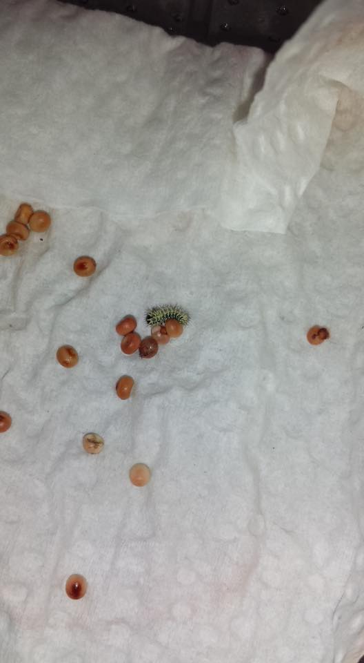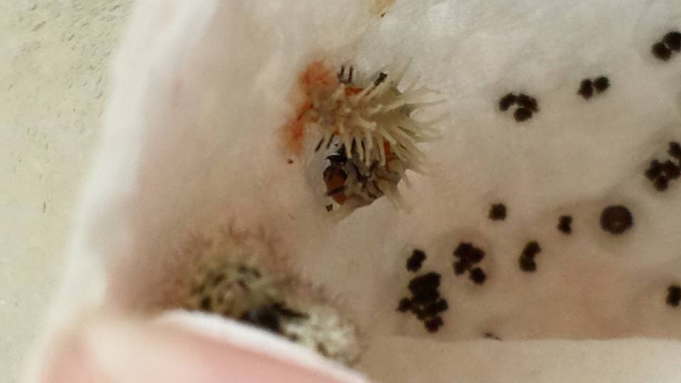 PS: die schwarzen Punkte sind die Kotballen der Raupen, sobald alle Raupen die Häutung geschafft haben werde ich wieder sauber machen