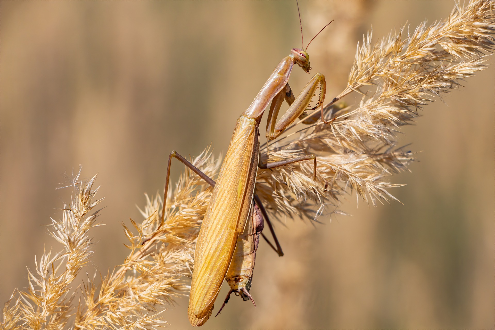 Gottesanbeterinnen sind übrigens nicht mit Heuschrecken und co. verwandt, die nächsten Verwandten und Vorfahren sind die Schaben.