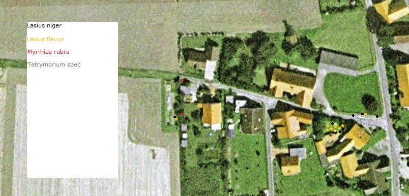 Da sind ein paar Punkte, und da sind fast ausschließlich häufig vorkommende Ameisenarten angegeben. Ich könnte dir auch so sagen, dass bei den Punkten Myrmica rubra, Lasius niger, Formica fusca und Co vorkommen... dafür brauch ich die Punkte nicht.