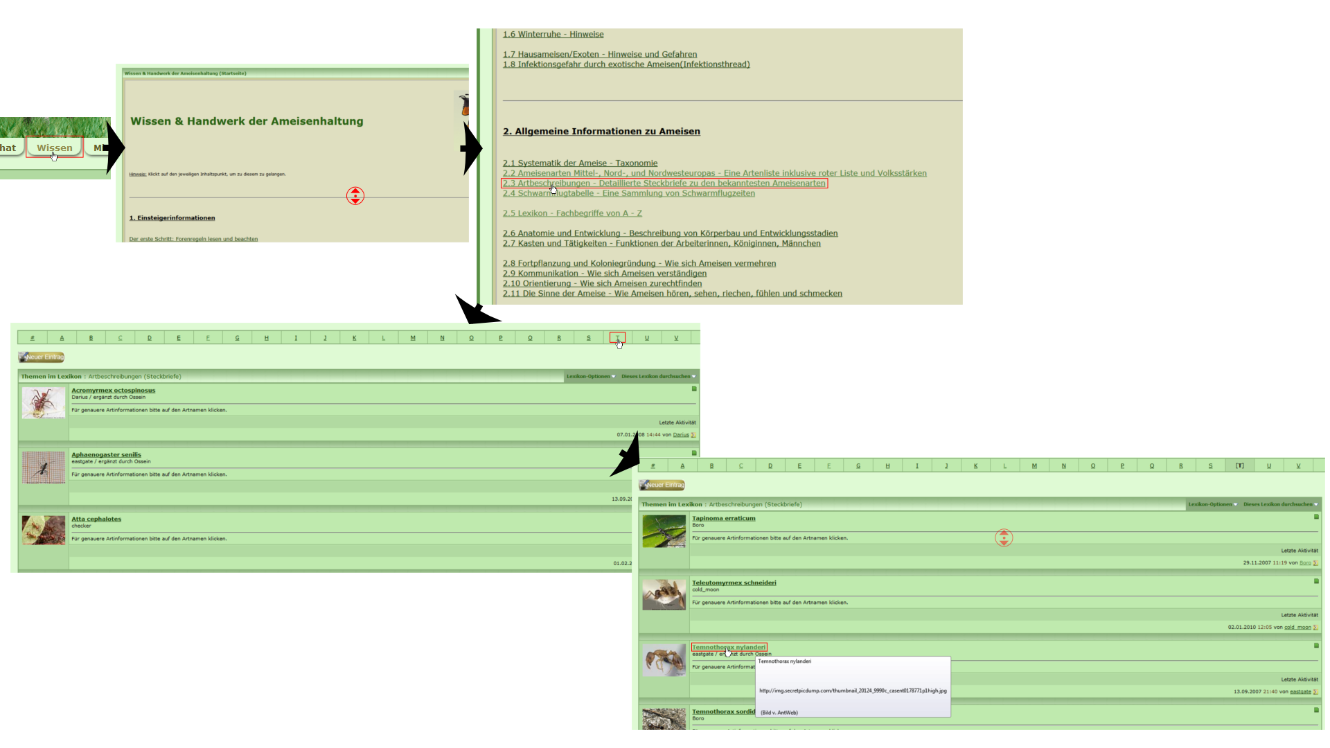 5. nach eventuellem Scrollen wird man schließlich auf die Temnothorax nylanderi Seite verwiesen